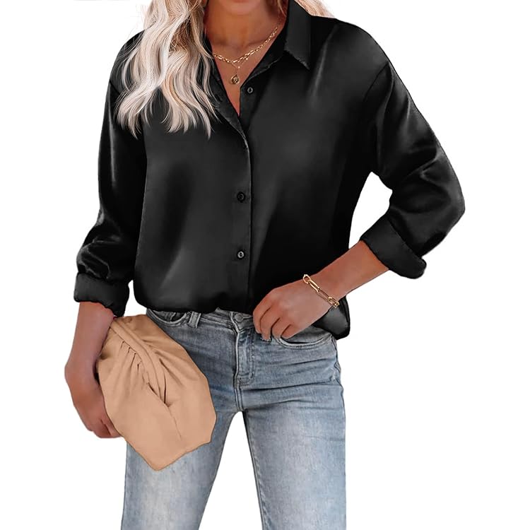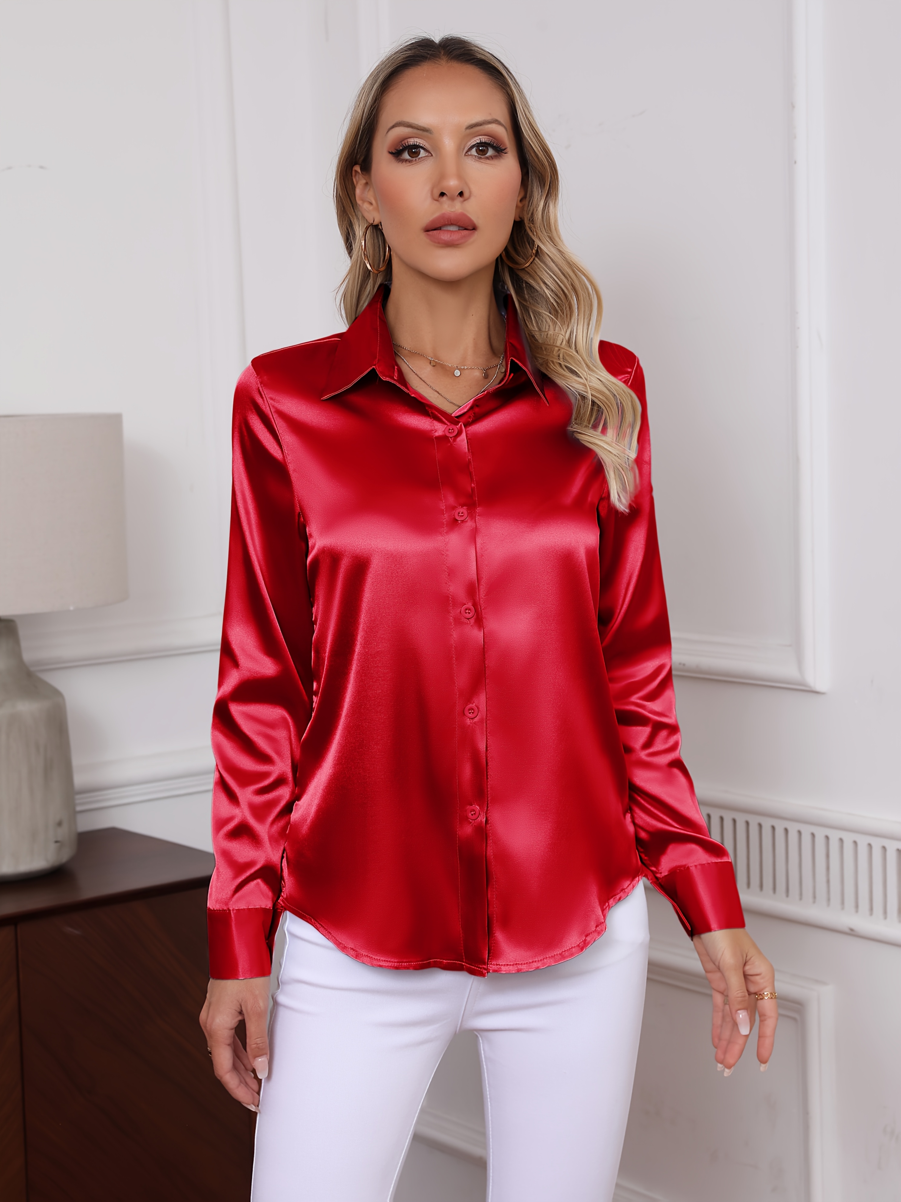 Elegant und vielseitig - dieses Damenhemd aus glattem Satin ist ein echter Allrounder! Mit schickem Umschlagkragen und Knopfleiste vorne, lässt es sich super kombinieren. Die langen Ärmel machen es perfekt für Herbst und Winter, aber der leichte Stoff ist auch für übergangszeiten ideal. Ob im Büro, beim Meeting oder am Abend - dieses Hemd sitzt immer perfekt. Der Satin-Stoff fühlt sich super weich auf der Haut an und glänzt dezent. Einfarbig und schlicht genug für den Business-Alltag, aber auch elegant genug für besondere Anlässe. Perfekt zu Hosen, Röcken oder als Layer unter Blazern. Ein Must-have in jeder Damengarderobe - du wirst es lieben! Verfügbar in verschiedenen Größen, auch in Übergrößen. Ein Hemd, das sich lohnt - qualitativ hochwertig und zeitlos schön. Mach dich bereit für Komplimente!