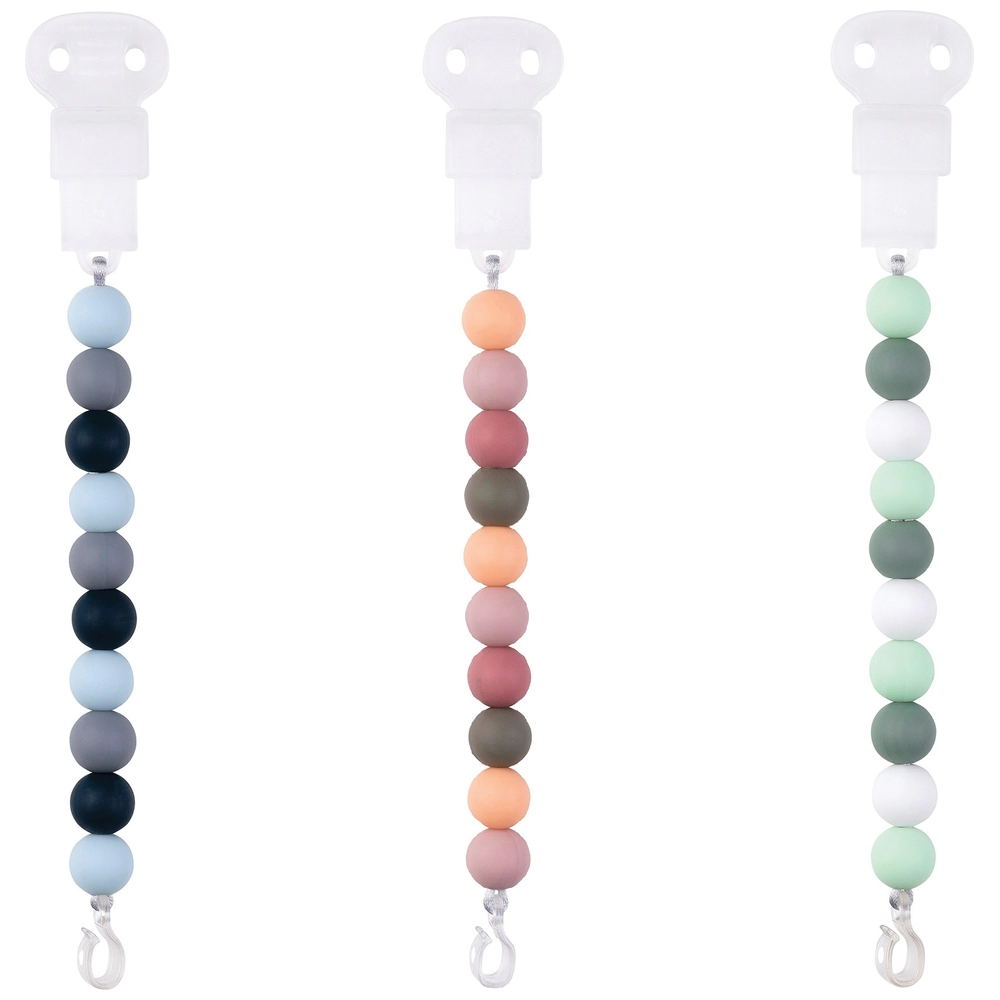 Nie wieder heruntergefallene Schnuller! Dieses praktische 2er-Set Schnullerkettchen aus 100% lebensmittelechtem Silikon ist die Rettung für alle Eltern. Vollständig BPA-frei und damit absolut sicher für Babys ab 0-6 Monaten. Die weichen, flexiblen Silikonperlen bieten nicht nur Halt für den Schnuller, sondern dienen auch als beruhigender Beißring für zahnende Babys. Der Edelstahl-Clip mit Kunststoffzähnen befestigt sich sicher an der Kleidung, ohne sie zu beschädigen. Einfach zu reinigen - spülmaschinenfest oder in kochendem Wasser abwaschbar. Das geniale 2-in-1 Design: Entferne einfach den Clip und du hast einen praktischen Beißring! So hat dein Baby immer etwas zum Kauen und der Schnuller bleibt sauber. In verschiedenen Farben erhältlich - perfekt für Jungen und Mädchen. Ein unverzichtbares Accessoire für unterwegs, zu Hause oder im Kinderwagen!