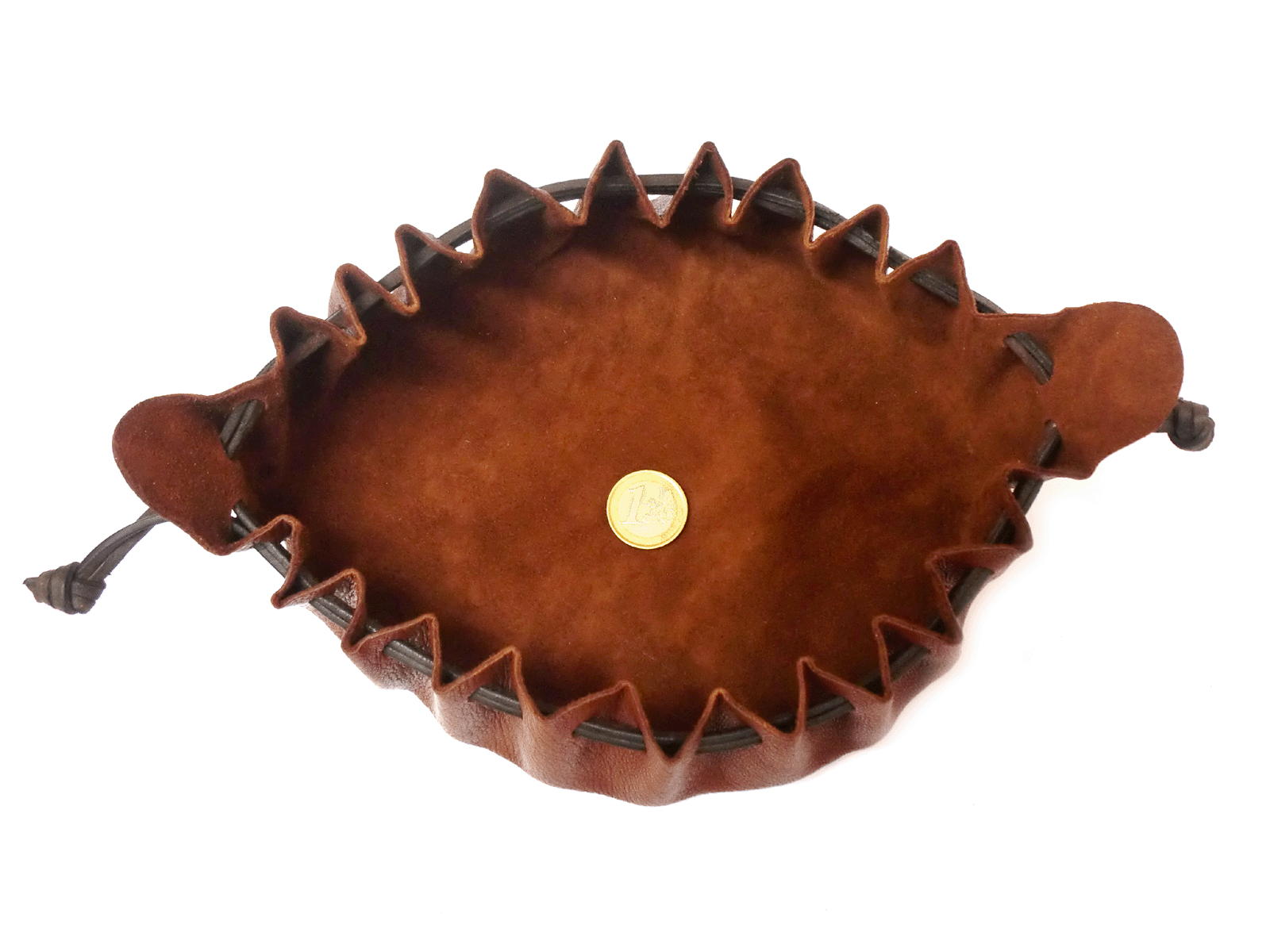 Alter Schwede, dieser Lederbeutel von Förster-Fellnest ist einfach authentisch! Aus echtem Vollnarben-Rindleder, 1,2mm stark und wunderbar weich in der Hand. Mit ca. 11cm Bodendurchmesser und 22cm Höhe passt ne Menge rein - ob Geld, Schlüssel oder was auch immer du mittelalterlich verstauen willst. Das Beste: Jedes Stück ist ein Unikat, weil das Narbenbild natürlich ist und die Ränder leicht ungleichmäßig bleiben. Sieht aus wie anno dazumal! Hergestellt in Deutschland von echten Lederprofis mit über 50 Jahren Erfahrung - keine Massenware aus Fernost. Der Beutel hat so einen angenehmen, hell- bis mittelbraunen Ton und kommt mit Zugband aus demselben Leder. Perfekt für Mittelalter-Märkte, LARP, Reenactment oder einfach als stylischer Alltagsbeutel. Die Verarbeitung ist top, das Leder wird mit der Zeit noch schöner. Einfach ein zeitloses Stück, das Geschichte atmet!