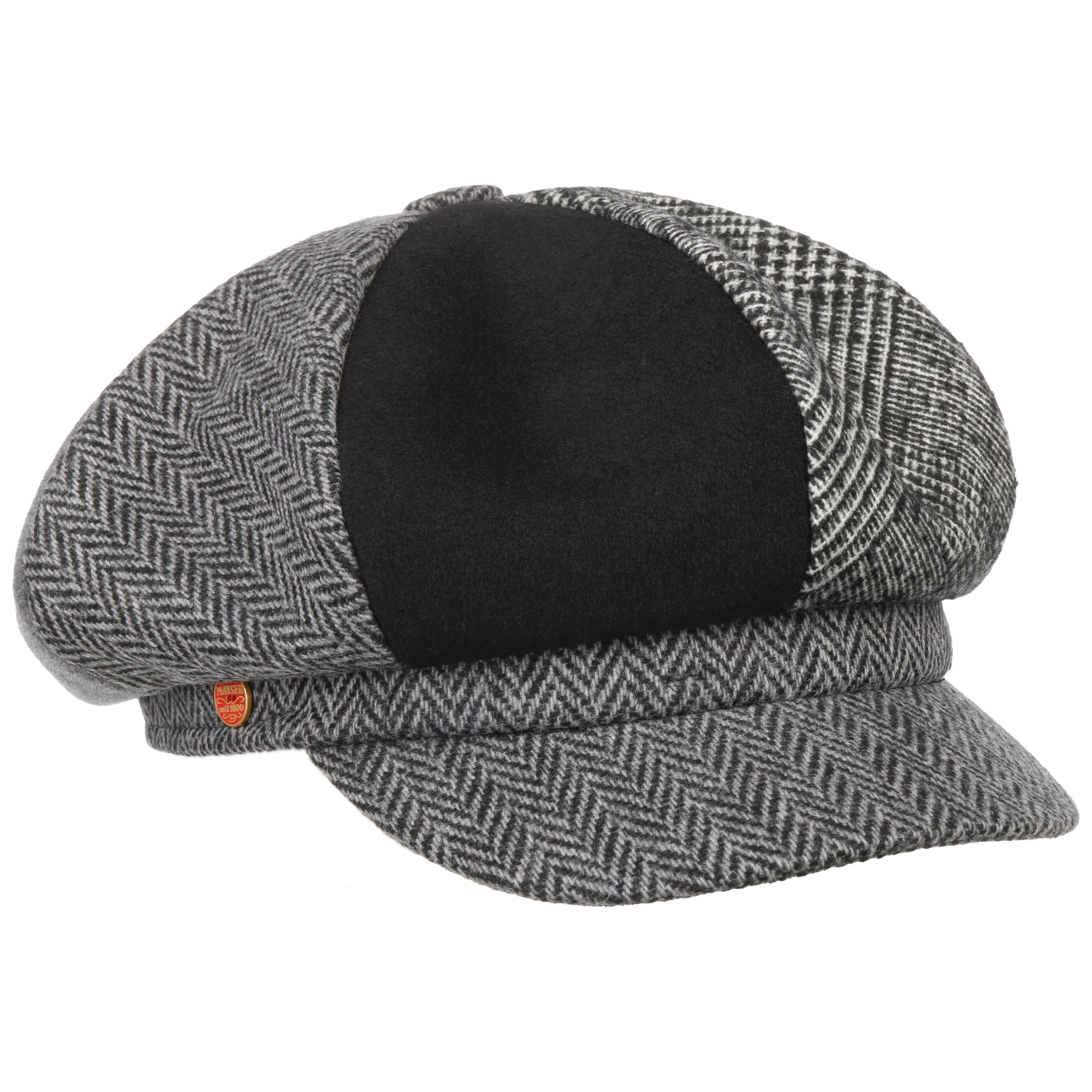 • Baskenmütze Damen Aus Wolle - Klassische Newsboy Cap Mit Gürtel-Detail In Schwarz