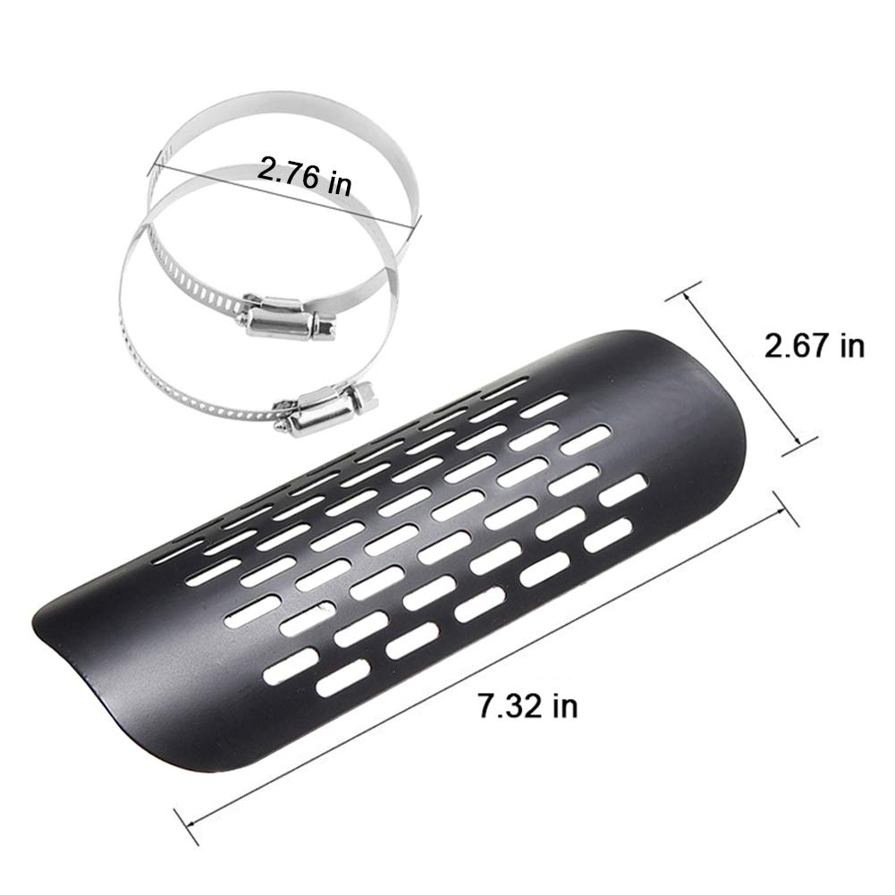 Hey Biker! Dieses Hitzeschild für deinen Auspuff ist absolut essentiell - es schützt dich und deine Mitfahrer vor fiesen Verbrennungen! Mit 270x57mm Größe passt es für die meisten Motorräder mit Auspuffrohr-Durchmessern von 50-70mm. Ob Chopper, Cruiser oder andere Maschinen - das schwarze Design mit Lochmuster sieht einfach mega stylisch aus. Aus robustem Metallstahl gefertigt, hält es hohe Temperaturen problemlos aus und rostet nicht. Montage? Simpel mit den beiden beiliegenden Klammern! Aber Achtung: Installier es am besten, wenn der Auspuff kalt ist und trag am besten Handschuhe. So machst du deine Maschine nicht nur sicherer, sondern verleihst ihr auch noch einen individuellen Look. Ein No-Brainer für jeden, der sein Bike liebt!