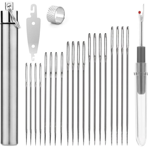 Alles in einer Box! Dieses 37-teilige Nähset hat wirklich alles, was du fürs Nähen, Sticken und Reparieren brauchst. Enthalten sind 25 Nadeln in verschiedenen Größen (sogar mit extra großen Öhrchen für einfaches Einfädeln), 2 praktische Nadelfädler, 1 Nahttrenner, 3 farbige Garnspulen (weiß, schwarz, rot) und 2 Fingerhüte. Alles sicher verstaut in einer praktischen Aufbewahrungsbox - super für unterwegs oder daheim. Die Nadeln sind aus hochwertigem Stahl gefertigt und brechen nicht so leicht. Perfekt für Anfänger die erste Schritte wagen oder für Profis die immer alles griffbereit haben wollen. Ob du nun einen Knopf annähst, stickst, Kreuzstich machst oder einfach nur schnell was reparieren musst - mit diesem Set bist du bestens ausgerüstet. Die Nadelfädler sind besonders praktisch: Einfach das dünne Ende durchs Nadelöhr schiefen, den Faden in den Haken legen und zurückziehen - schon ist der Faden durch! Total einfach, auch wenn die Augen mal nicht mehr so wollen wie sie sollen. Ein Must-have für jeden Haushalt - denn irgendwas ist ja immer zu nähen!