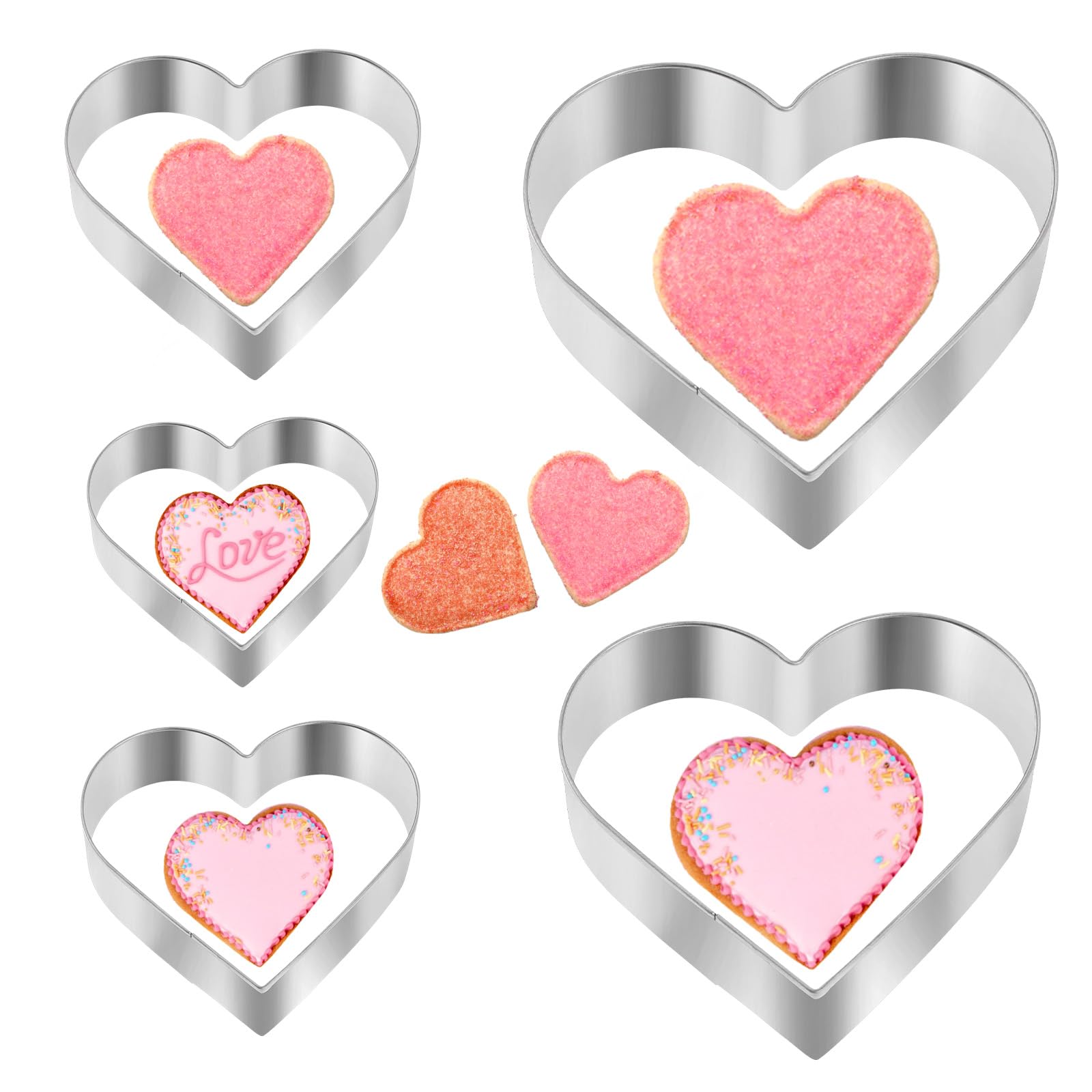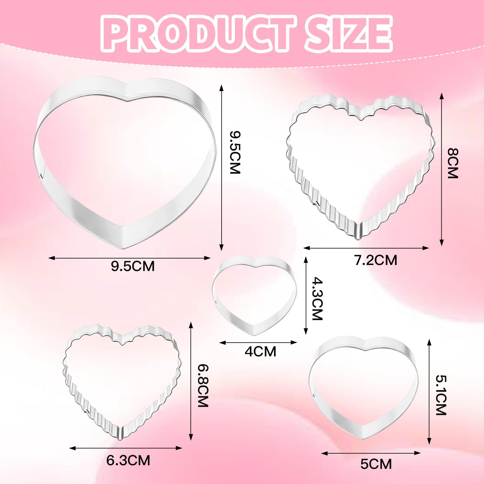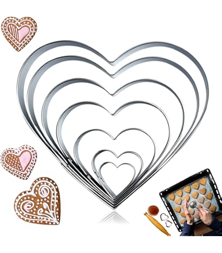 Backen war noch nie so romantisch! Mit diesem 6-teiligen Set an Herz-Ausstechformen kreierst du die süßesten Kekse, Kuchen und Desserts. Von ganz klein bis extra groß ist für jede Gelegenheit die passende Größe dabei.\n\nDie Größen im Überblick:\n• Herz 1: 2,5 x 2,3 cm (super süß für Mini-Kekse)\n• Herz 2: 3,5 x 3 cm (perfekt für Pralinen)\n• Herz 3: 5,5 x 5 cm (klassische Keksgröße)\n• Herz 4: 7,7 x 7 cm (ideal für größere Kekse)\n• Herz 5: 10 x 8,5 cm (schon fast kleine Kuchen)\n• Herz 6: 11,5 x 10,5 cm (richtige Herzkuchen)\n\nDas Besondere: Die Ausstecher sind aus lebensmittelechtem Edelstahl! Das bedeutet sie rosten nicht, sind super leicht zu reinigen und halten ewig. Du kannst sie ohne Bedenken für alle deine Backkreationen verwenden.\n\nEinsatzmöglichkeiten gibt's wie Sand am Meer:\n• Plätzchen und Kekse ausstechen\n• Fondant und Marzipan formen\n• Pfannkuchen in Herzform backen\n• Sandwiches ausstechen\n• Obst und Gemüse dekorativ schneiden\n• Sogar für Bastelknete geeignet!\n\nPerfekt für besondere Anlässe wie:\n• Valentinstag\n• Hochzeiten\n• Geburtstage\n• Jahrestage\n• Oder einfach mal so um jemandem eine Freude zu machen\n\nDie Ausstecher sind temperaturbeständig von -40°C bis +230°C - du kannst sie also nicht nur für kalte Speisen, sondern auch für heiße Teige verwenden. Und reinigen geht ratzfatz: Einfach unter fließend Wasser abspülen und trockenreiben.\n\nOb du nun Back-Profi bist oder gerade erst anfängst - mit diesen Herz-Ausstechformen gelingen dir garantiert bezaubernde Kreationen. Sie machen sich auch super als Geschenk für Hobby-Bäcker!\n\nDas Set bringt Romantik in deine Küche und sorgt für strahlende Augen bei deinen Liebsten. Worauf wartest du noch? Hol dir die Herzen und back dir die Welt, wie sie dir gefällt!