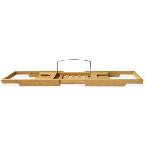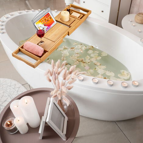 Entspannung pur in der Badewanne - aber wo lassen sich Buch, Tablet und Getränk abstellen? Diese Bambus-Ablage löst das Problem! Ausziehbar von 70 auf 105 cm passt sie in fast jede Badewanne.