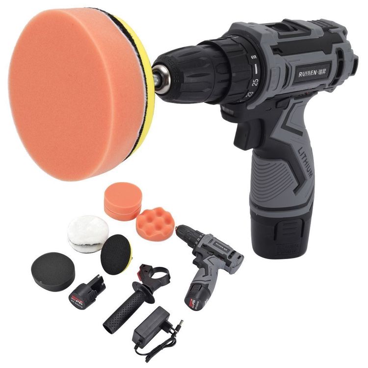 Schluss mit Kratzern und matter Lackierung! Diese kraftvolle Akku-Poliermaschine macht dein Auto wieder strahlend schön. Mit zwei wiederaufladbaren 21V Akkus hast du genug Power - wenn einer leer ist, nimmst du einfach den anderen. Jeder Akku lädt in etwa 90 Minuten und hält je nach Einsatz 20-60 Minuten durch.\\n\\nDie 8 Geschwindigkeitsstufen geben dir die volle Kontrolle: Stufe 1-2 fürs Wachsen, 3-5 fürs Polieren und 6-8 für hartnäckige Lackfehler. Bis zu 5500 U/min bringen selbst alte Lacke wieder zum Glänzen.\\n\\nDie Exzenterachse und die 6-Zoll-Polierscheibe sorgen für eine gleichmäßige Verteilung - keine unschönen Schleifspuren mehr! Der reine Kupfermotor arbeitet leise und kraftvoll.\\n\\nIm Lieferumfang findest du alles, was du brauchst: Poliermaschine, zwei Akkus, Ladegerät, verschiedene Polierpads, Schleifpapier und sogar eine praktische Aufbewahrungstasche. Ob Auto, Möbel oder Holz - mit diesem Set machst du alles blitzeblank. Dein Auto wird dich kaum wiedererkennen!