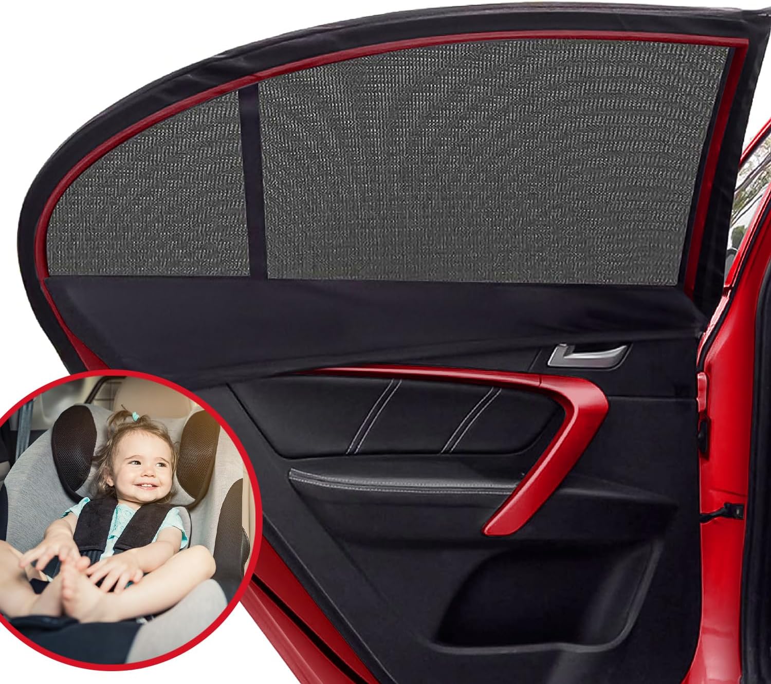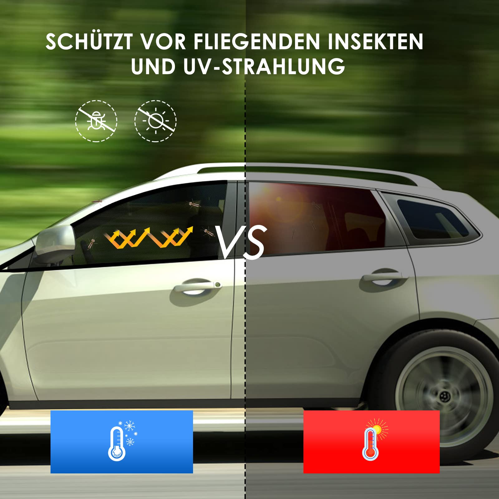 Perfekter Sonnenschutz für dein Auto! Dieses 4-teilige Set von BOZILY schützt deine Kinder, dein Baby oder deine Haustiere vor starker Sonneneinstrahlung. Die dehnbaren Blenden passen sich flexibel an die meisten Seitenfenster an (von 56 cm bis 105 cm dehnbar). Das doppellagige Mesh-Material blockiert UV-Strahlen, reduziert die Hitze im Auto und hält dabei lästige Insekten fern. Gleichzeitig bietet es Privacy, ohne die Sicht nach außen zu beeinträchtigen. Die Installation ist super einfach: Einfach über die geöffnete Tür stülpen und fertig! Bei Nichtgebrauch platzsparend verstauen. Ein Muss für jede Familie mit Auto!