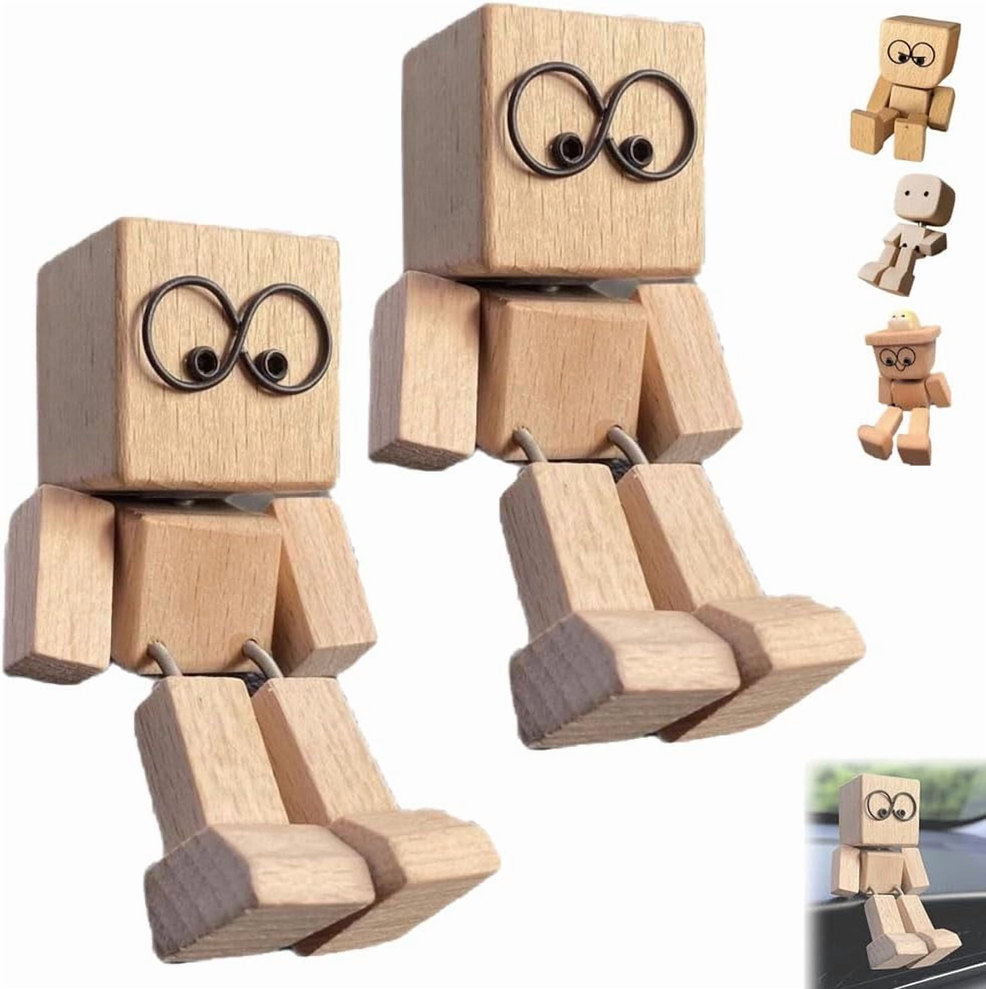 Wackelnder Holzmann Figur - Lustiger Auto Dashboard Dekor Mit Magnet-Gesichtern