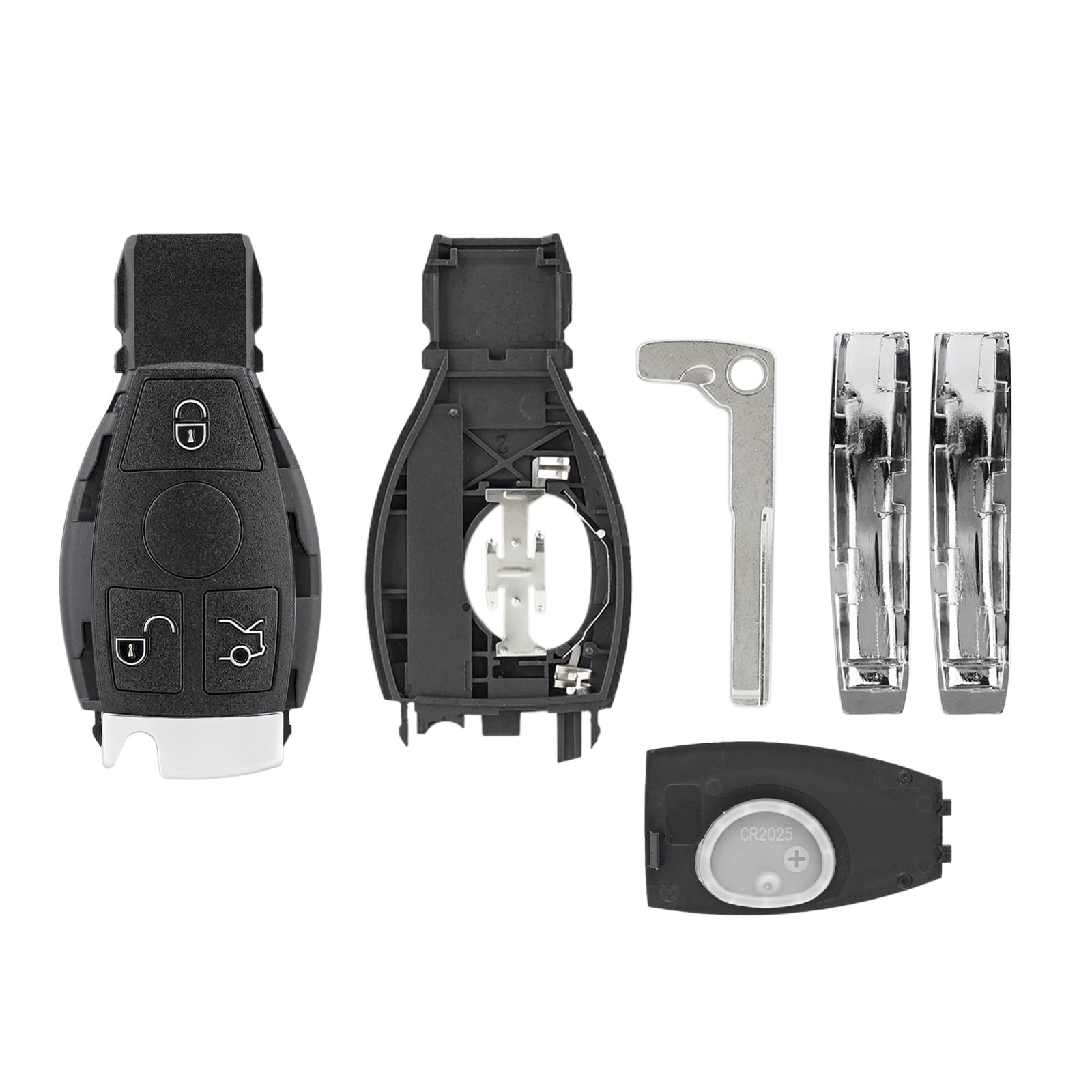 Dein Mercedes-Schlüssel sieht mitgenommen aus? Dieses Ersatzgehäuse mit 3 Tasten macht ihn wieder wie neu! Perfekt passend für Mercedes W203, W211 und W204 Modelle - aber vor dem Kauf unbedingt checken ob's dein Modell ist! Aus hochwertigem ABS-Kunststoff in schwarz, fühlt sich gut an in der Hand und schützt vor Kratzern. Die Installation ist super einfach - kein Programmieren nötig, einfach die Elektronik aus dem alten Gehäuse nehmen und in dieses hier umziehen! Sieht aus wie das Original, aber kostet nur einen Bruchteil. Damit sparst du dir den teuren Werkstattbesuch! Die Tasten haben den richtigen Druckpunkt und das Gehäuse schließt perfekt. Einfach ein guter Ersatz für abgenutzte oder kaputte Original-Schlüssel. Mach deinen Schlüssel wieder frisch und funktional - ohne großen Aufwand und ohne viel Geld auszugeben! Lieferung inklusive: 1x Schlüsselgehäuse. Einfach bestellen, umbauen und sich über den wie-neu-Schlüssel freuen!