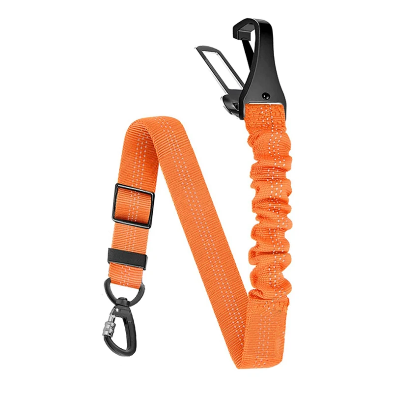 Einfach am Gurtschloss des Autos oder direkt am Fahrzeugrahmen befestigen. Kann dranbleiben oder leicht entfernt werden. Bequem für den Hund und sicher für alle.