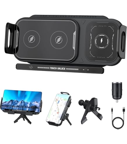Nie wieder kabellos im Auto unterwegs! Dieser coole Handyhalter mit kabellosem Laden ist der perfekte Begleiter für jede Fahrt. Einfach in den Lüftungsschlitz klicken und schon kannst du dein Handy sicher und griffbereit platzieren. Das 360°-Drehgelenk ermöglicht dir die perfekte Blickposition - ob hochkant oder quer. Mit kabellosem Laden bis zu 15 W Maximum lädt dein Smartphone während der Fahrt einfach auf. Die Dual-Spule-Technologie sorgt für zuverlässige Energieübertragung. Aus ABS- und PC-Materialien plus galvanisiertem Aluminium ist der Halter nicht nur stylisch in Grau, sondern auch stoß-, wind- und vibrationsfest. Unterstützt Schnelllade-Eingang mit DC5V/2A und DC9V/1.67A - dein Akku ist schneller voll als du gucken kannst. Navigation, Musik hören oder telefonieren - alles ohne lästige Kabel! Wie oft hast du schon dein Handy im Auto suchen müssen?