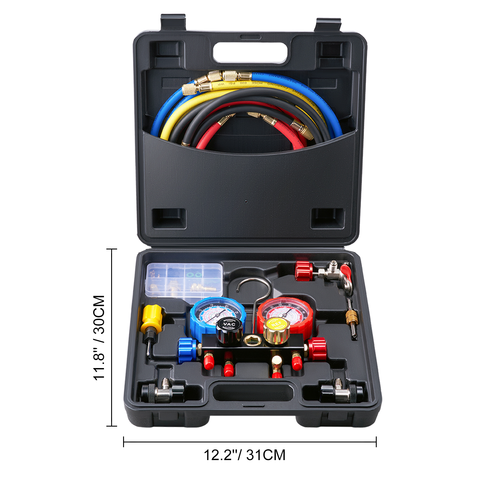 Deine Auto-Klimaanlage macht schlapp? Mit diesem praktischen R134A Kältemittel-Ladeset bringst du sie schnell wieder auf Trab! Das Set kommt komplett mit Messgerät, sodass du den Druck immer im Blick hast. Super einfach zu bedienen - perfekt für alle, die ihr Auto selbst warten möchten. Geeignet für R134A, R12 und R22 Kältemittel. Das Manometer zeigt dir den Versorgungsdruck in PSI an, der äußere Kreis in kg/cm2. Mit langlebiger Konstruktion und stabiler Leistung. Im Lieferumfang findest du alles, was du brauchst: Kältemittel-Gauge-Schlauch, R134A Flaschenöffner und Selbstverriegelungsanschluss. So kannst du deine Klimaanlage professionell befüllen, ohne gleich in die Werkstatt zu müssen. Ein echter Game-Changer für alle Autobesitzer! Einfach anschließen, ablesen und deine Klimaanlage genießen. Damit bleibst du auch an heißen Tagen cool im Auto!