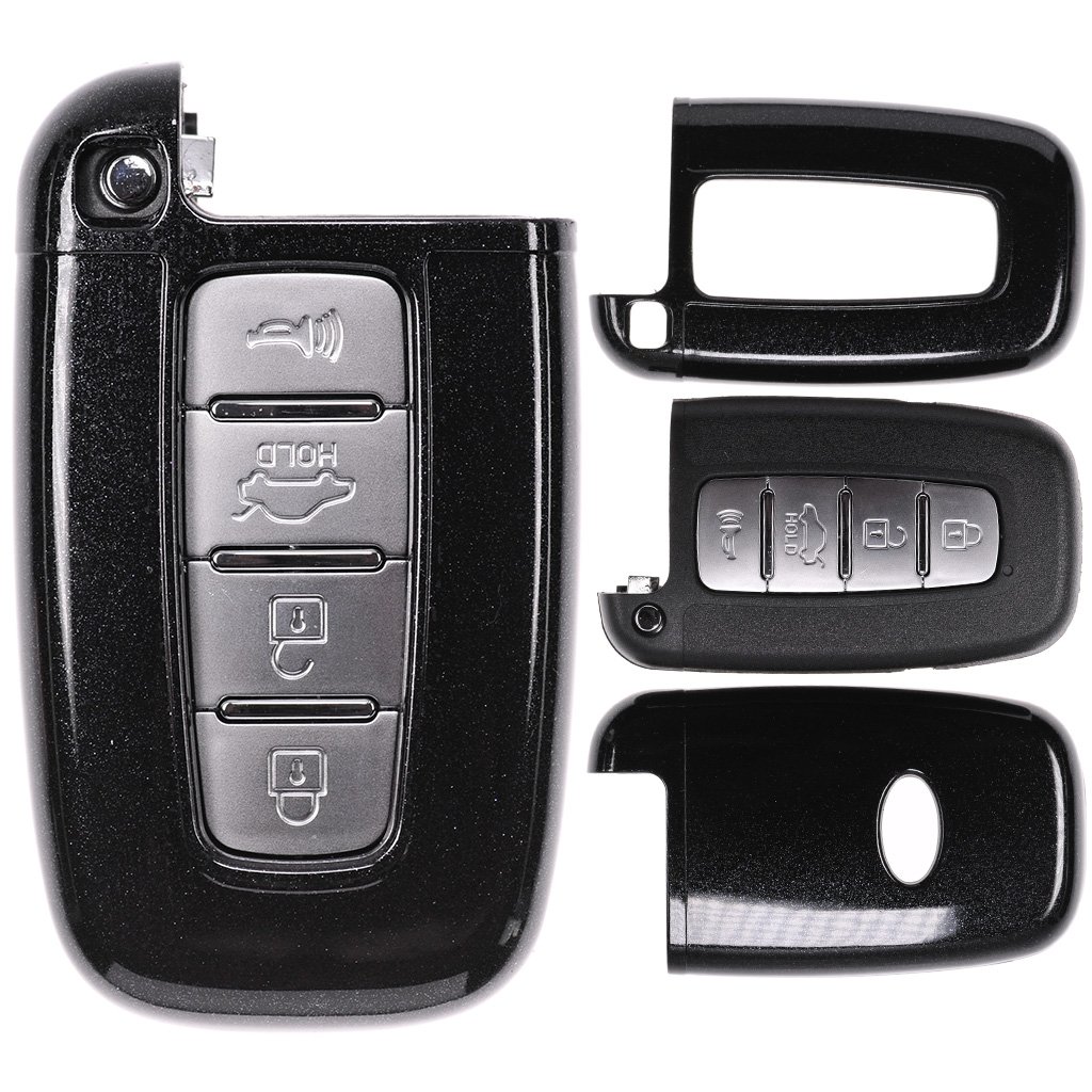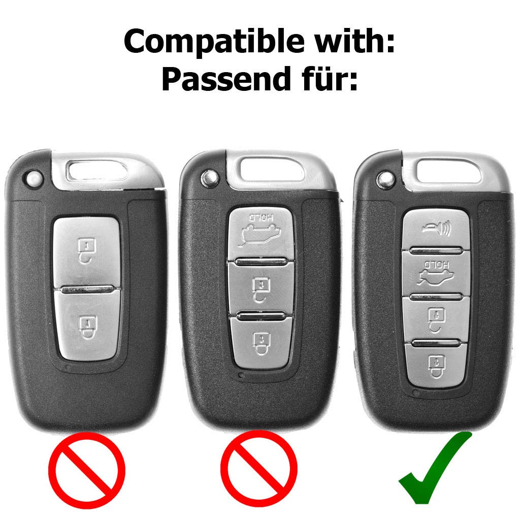 Schütz deinen Autoschlüssel und verleih ihm gleichzeitig einen stylischen Look! Diese hochwertige Schlüssel-Hülle in Metallic Schwarz ist die perfekte Wahl für Hyundai i40, Tucson, i30, Elantra und Kia Sportage. Hergestellt aus robustem ABS-Kunststoff, durchgefärbt und glänzend lackiert - das sieht nicht nur gut aus, sondern hält auch was aus! Einfach um den originalen Fahrzeugschlüssel clippen und schon ist dein Schlüssel vor Kratzern und Abnutzung geschützt. Wichtig: Nur für Original-Fahrzeugschlüssel geeignet! Bei Smartkeys ohne Keyless Go kann der Schlüssel nicht mit Hülle ins Zündschloss gesteckt werden. Die Bedienung aller Tasten bleibt uneingeschränkt möglich. Lieferumfang: 1x Autoschlüssel-Blende (2-teilig) in metallischem Schwarz. Demontage ist ganz einfach mit einem Schlitzschraubendreher. Schau dir vor dem Kauf unbedingt an, ob dein Schlüssel die gleiche Form und Tastenanzahl hat wie auf den Bildern. Mach deinen Schlüssel zum echten Hingucker!