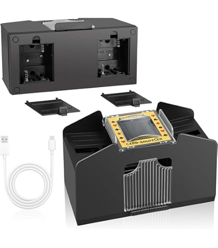 Nie wieder Karten mischen! Diese elektrische Mischmaschine erledigt das für dich. Zwei Modi: Wellensensor (einfach Hand darüber winken) oder Knopf-Druck. Mischt 1-4 Decks in Sekunden - super für Poker, Blackjack oder UNO. Kompatibel mit allen Standard-Kartengrößen. Leise (nur 65 dB) und platzsparend. Betrieb per USB oder 4 AA-Batterien. Perfekt für Spieleabende, Partys oder Casino-Nächte. Spart Zeit und sorgt für perfekt gemischte Karten jedes Mal. Der Hit auf jeder Party!