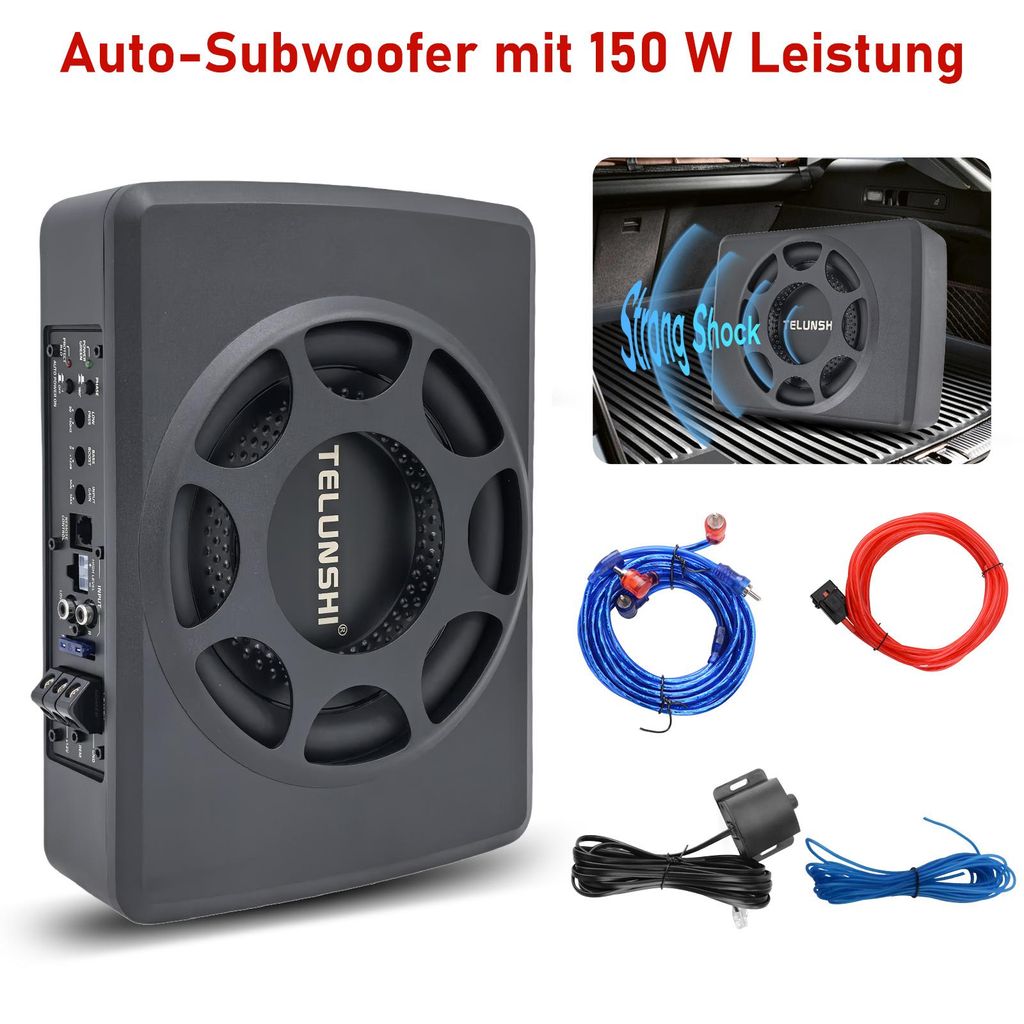Bass, der unter die Haut geht! Dieser 8 Zoll Active Subwoofer bringt den Sound deiner Musik auf das nächste Level. Mit 200 Watt Nennleistung und satten 600 Watt Maximalleistung sorgt er für kraftvollen, tiefen Bass, den du nicht nur hörst, sondern richtig fühlst. Das kompakte Design passt perfekt unter jeden Autositz - kein wertvoller Kofferraumplatz geht verloren. Aus hochwertigen Materialien wie Holz, PU und Edelstahl gefertigt, ist dieser Subwoofer nicht nur leistungsstark, sondern auch langlebig. Der Frequenzbereich von 40 Hz bis 200 Hz garantiert kristallklaren Sound. Mit der einstellbaren Bassverstärkung von 0-12 dB kannst du den Sound genau an deine Vorlieben anpassen. Einfache Installation - alles Notwendige ist im Lieferumfang enthalten: Audiokabel, REM-Steuerkabel und Hochfrequenzkabel. Ob du Hip-Hop, Rock oder Elektro hörst - mit diesem Subwoofer hörst du Details, die dir vorher entgangen sind. Hol dir den Kinosaal ins Auto!