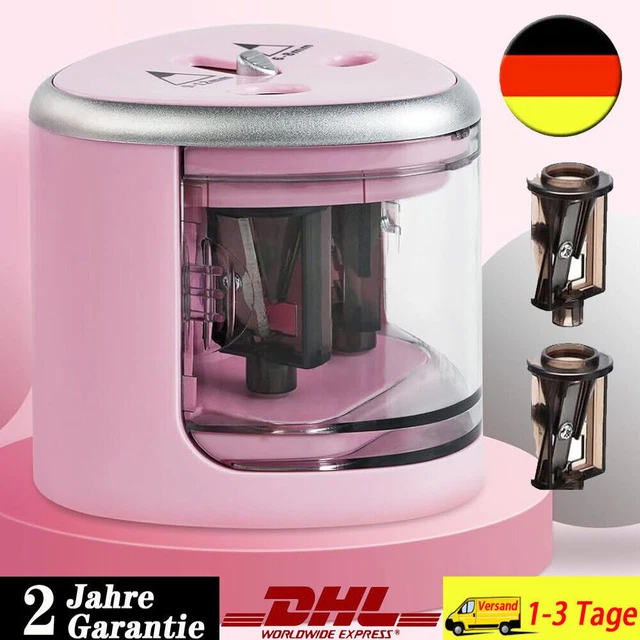 Schluss mit stumpfen Stiften! Dieser elektrische Bleistiftspitzer macht das Anspitzen zum Kinderspiel. Perfekt für Nr. 2 Bleistifte und Buntstifte mit 6-8mm Durchmesser. Die scharfe Spiralklinge spitzt in nur 3-5 Sekunden und stoppt automatisch, wenn der Stift fertig ist. Super sicher: Der 8mm Eingang verhindert, dass Kinderfinger hineingelangen. Du kannst zwischen 3 Schärfegraden wählen und mit über 3.000 Schärfvorgängen hält er ewig. Betrieb mit 4 AA Batterien oder USB-Kabel - ideal für Schule, Büro und Zuhause. Die große Spänebox reduziert Reinigungsaufwand. Mit Reinigungsbürste im Lieferumfang. Einfach Stift reinstecken und los geht's!
