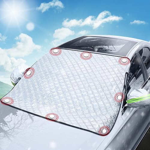 Kennst du das? Im Winter eiskratzen oder im Sommer brütend heisses Auto? Mit dieser praktischen Scheibenabdeckung von HP bist du dagegen gewappnet! Die Abdeckung schützt nicht nur Front- und Seitenscheiben, sondern auch Spiegel und Türschlösser. Die eingearbeiteten Magnete halten sie sicher auf Dach und Türen fest – selbst bei Wind! Hergestellt aus hitzeabweisendem Polyethylen-Gewebe in den Maßen 285 x 150 cm. Vor dem ersten Gebrauch einfach den Lack gut reinigen, dann klappt's perfekt. Wird praktischerweise mit Aufbewahrungstasche geliefert. Seit 1925 steht HP für Qualität – da kannst du dich drauf verlassen!