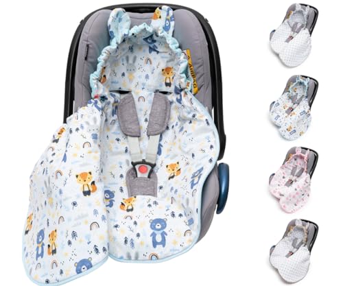 Der perfekte Begleiter für kalte Tage! Diese Baby-Einschlagdecke passt ideal auf Autositze und Babyschalen. Aus weicher Baumwolle und Plüsch, mit 120g Füllung für angenehme Wärme. Mit praktischem Klettverschluss und großer Kapuze. Geeignet für Babys bis 73cm (0-12 Monate). Öko-Tex zertifiziert, maschinenwaschbar bei 30°C. Passt zu MaxiCosi, Römer, Cybex und anderen Marken. Ideal für Herbst und Winter!