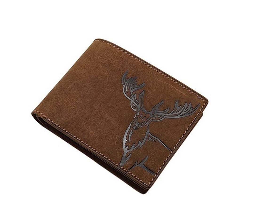 Diese handliche Geldbörse aus echtem Büffelleder ist nicht nur stylisch, sondern auch super praktisch! Im Hochformat mit schönem Hirsch-Motiv in Braun gehalten. Mit 7 Kartenfächern für deine Kredit- und Visitenkarten, plus 4 weitere Einsteckfächer für Belege und Tickets. Das Geldscheinfach und das Hartgeldfach mit Druckknopf bieten reichlich Platz. Das besondere Feature: Integrierter RFID-Schutz, der deine Karten vor kontaktlosem Auslesen schützt - vom TÜV Saarland zertifiziert! Sogar ein Einkaufswagenchip ist dabei. Mit den Maßen 8,5x3x10,5 cm passt sie in jede Jackentasche. Aus kräftigem, naturbelassenem Büffelvollleder gefertigt, das mit der Zeit eine wunderschöne Patina entwickelt. Ein zeitloses Accessoire für alle, die Wert auf Qualität und Sicherheit legen!