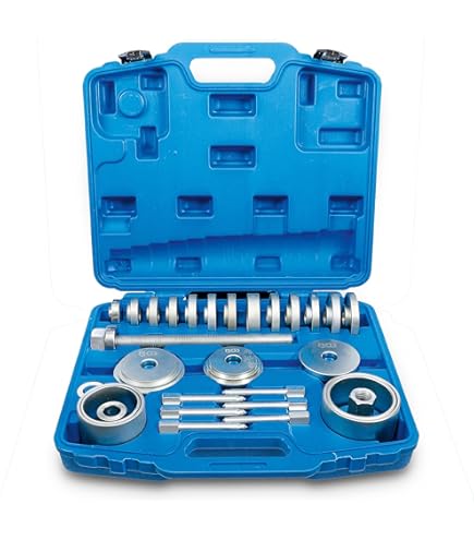 Professionelles Radnaben-Werkzeug speziell für Audi-Modelle! Der BGS 8709 Satz erleichtert dir Montage und Demontage der vorderen Radnabe erheblich. Perfekt geeignet für A4/S4 Quattro (2001-2008), A6/S6 (2002-2005) und A8/S8 (2004-2007) sowie den R8 ab 2007. Das Set enthält alles, was du brauchst: Druckplatte, fünf Druckstifte, geteilte Demontageschale, Demontage-Druckstück und Montagehülse. Entwickelt für den Einsatz mit Hydraulikpressen - so arbeitest du effizient und schonend an deinem Fahrzeug. Kein Herumgefriemel mehr mit unpassenden Werkzeugen! Dieses Spezialwerkzeug spart dir Zeit und Nerven bei jeder Radnaben-Arbeit. Ob in der Werkstatt oder für passionierte Schrauber - mit diesem Satz machst du die Arbeit richtig und verhinderst Beschädigungen an teuren Teilen. Ein Muss für jede Audi-Werkstatt und jeden Audi-Liebhaber, der Wert auf professionelles Equipment legt!