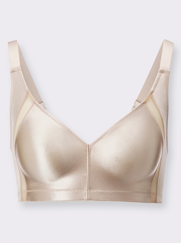 Ohne Bügel, aber mit mega Halt durch die spezielle Schnittführung. Die Träger sind extra breit und verstellbar - schneiden nicht ein. Der 3-fach Verschluss hinten gibt zusätzliche Sicherheit.