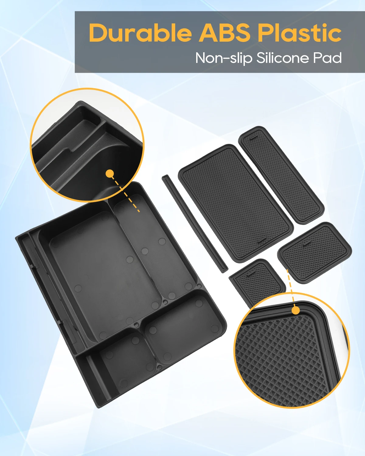 Diese Mittelkonsole-Box von BIBIBO ist genau das Richtige für deinen Dacia Sandero 3, Stepway oder Jogger (2021-2025)! Aus robustem ABS-Kunststoff gefertigt - super langlebig, schlagzäh und hitzebeständig. Perfekt organisiert sie dein Handy, Geldbeutel, Schlüssel und andere Kleinigkeiten, damit im Auto alles seinen Platz hat. Die rutschfeste Gummimatte verhindert, dass was verrutscht. Einbau ist kinderleicht - einfach in die Mittelkonsole einsetzen, kein Werkzeug nötig. Jede Box wird vor dem Versand geprüft, und bei Fragen kriegst du innerhalb von 24 Stunden Antwort. Endlich Ordnung im Auto - einfach reinlegen und sich über den aufgeräumten Innenraum freuen!