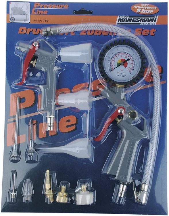 Perfektes Druckluft-Set für deine Werkstatt! Das BITUXX 3-teilige Set enthält alles, was du für die Arbeit mit deinem Kompressor brauchst. Der 5 Meter lange knickfeste Spiralschlauch gibt dir genug Reichweite für alle Arbeiten. Die Reifendruckpistole mit integriertem Manometer zeigt dir genau an, wie viel Druck in deinen Reifen ist - perfekt fürs Auto, Motorrad oder Fahrrad. Die Ausblaspistole mit kurzer Düse ist ideal zum Reinigen von Werkzeugen, Maschinen oder einfach zum Entstauben der Werkbank. Beide Pistolen haben Euro-Schnellverschlusskupplungen - einfach einrasten und los geht's! Ob du Reifendruck kontrollieren, Teile reinigen oder Luft für andere Arbeiten nutzen willst - dieses Set hat alles dabei. Robust verarbeitet und sofort einsatzbereit. Mach deine Werkstatt komplett mit diesem praktischen Druckluft-Set!