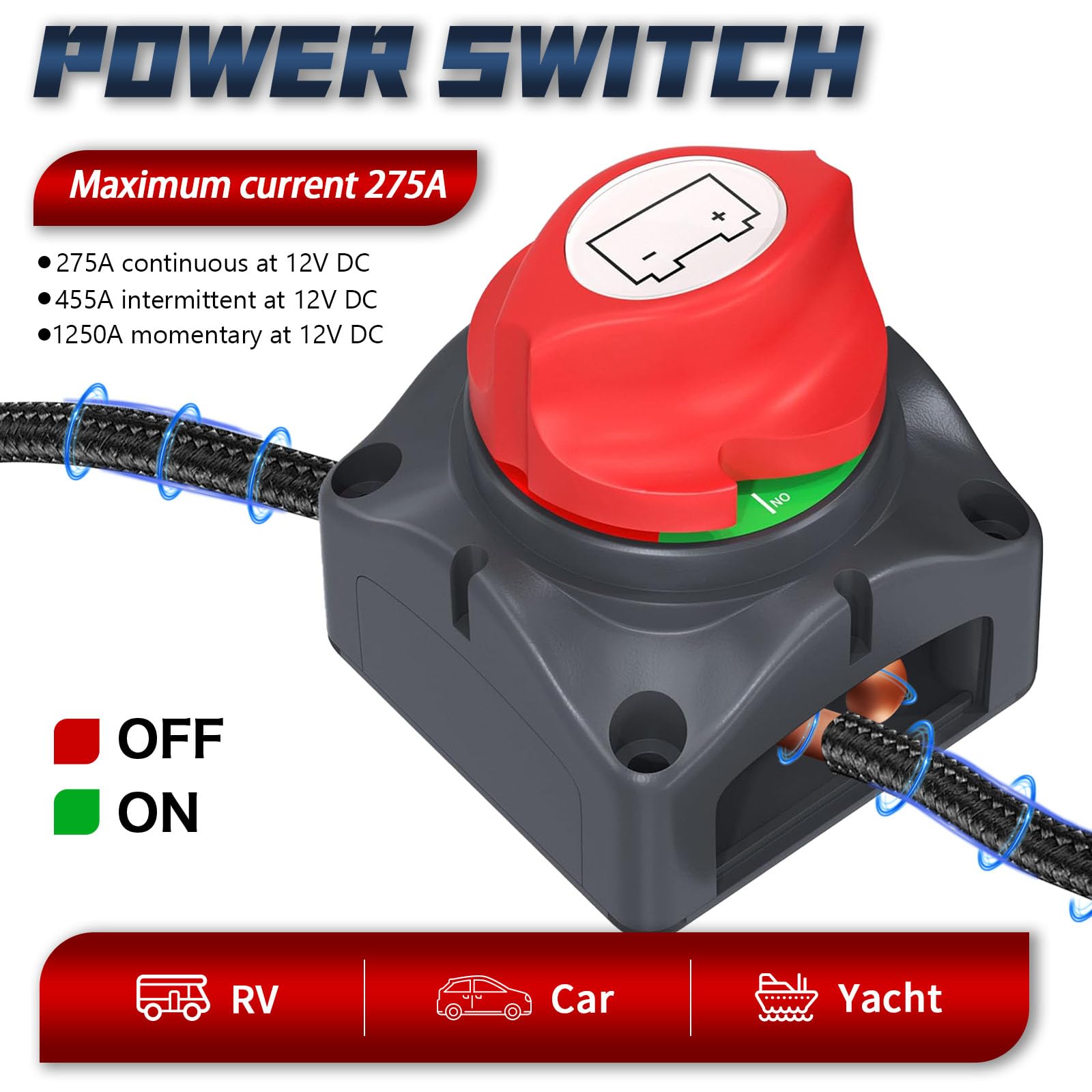Pass auf, diese BIZOI Batterie Trennschalter sind echt praktisch für dein Fahrzeug! Das Set kommt mit 2 Stück - du hast also gleich Ersatz oder kannst mehrere Systeme absichern. Mit 275A Belastbarkeit sind sie richtig robust und für 12V, 24V, sogar 48V Systeme geeignet. Aus ABS-Kunststoff gefertigt mit Silber-Kupfer-Kern innen - beste Isolierung und Leitfähigkeit. Die farbliche Kennung macht die Bedienung super einfach: Grün für EIN, Rot für AUS. Verschiedene Ausrichtungen der Anschlusslöcher erleichtern die Installation. Perfekt um Batterieverlust zu minimieren und Stromlecks zu verhindern. Ideal für Auto, Boot, Motorrad, Wohnmobil oder LKW. Im Lieferumfang sind 8 Schrauben dabei - alles was du brauchst. Einfach installieren und deine Batterie ist sicher vor unerwünschtem Stromverbrauch. Besonders praktisch wenn du dein Fahrzeug länger stehen lässt. Für alle, die Wert auf Sicherheit und Batteriepflege legen. Ein kleines Teil mit großer Wirkung!