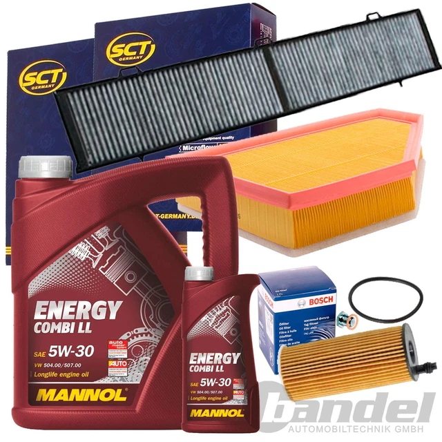 Alles für die nächste Inspektion deines BMWs in einem Set! Dieses Komplettpaket enthält alles, was du brauchst: 5 Liter Aral Super Tronic K 5W30 Öl, Innenraumluftfilter, Luftfilter, Ölfilter und die passende Verschlussschraube für die Ölwanne. Perfekt abgestimmt für BMW E81, E87, E90, E91, E92 und X1 E84 Modelle. Das Öl ist aschearm, schützt deinen Partikelfilter und spart dabei Kraftstoff. Einfach bestellen und die Wartung selbst durchführen oder in der Werkstatt machen lassen. Aber vorher unbedingt die Kompatibilität mit deinem Fahrzeug überprüfen - nutze dafür die HSN/TSN Nummern aus deinem Fahrzeugschein. Über 6700 verschiedene Sets verfügbar - wir haben für fast jedes Auto die passende Kombination!