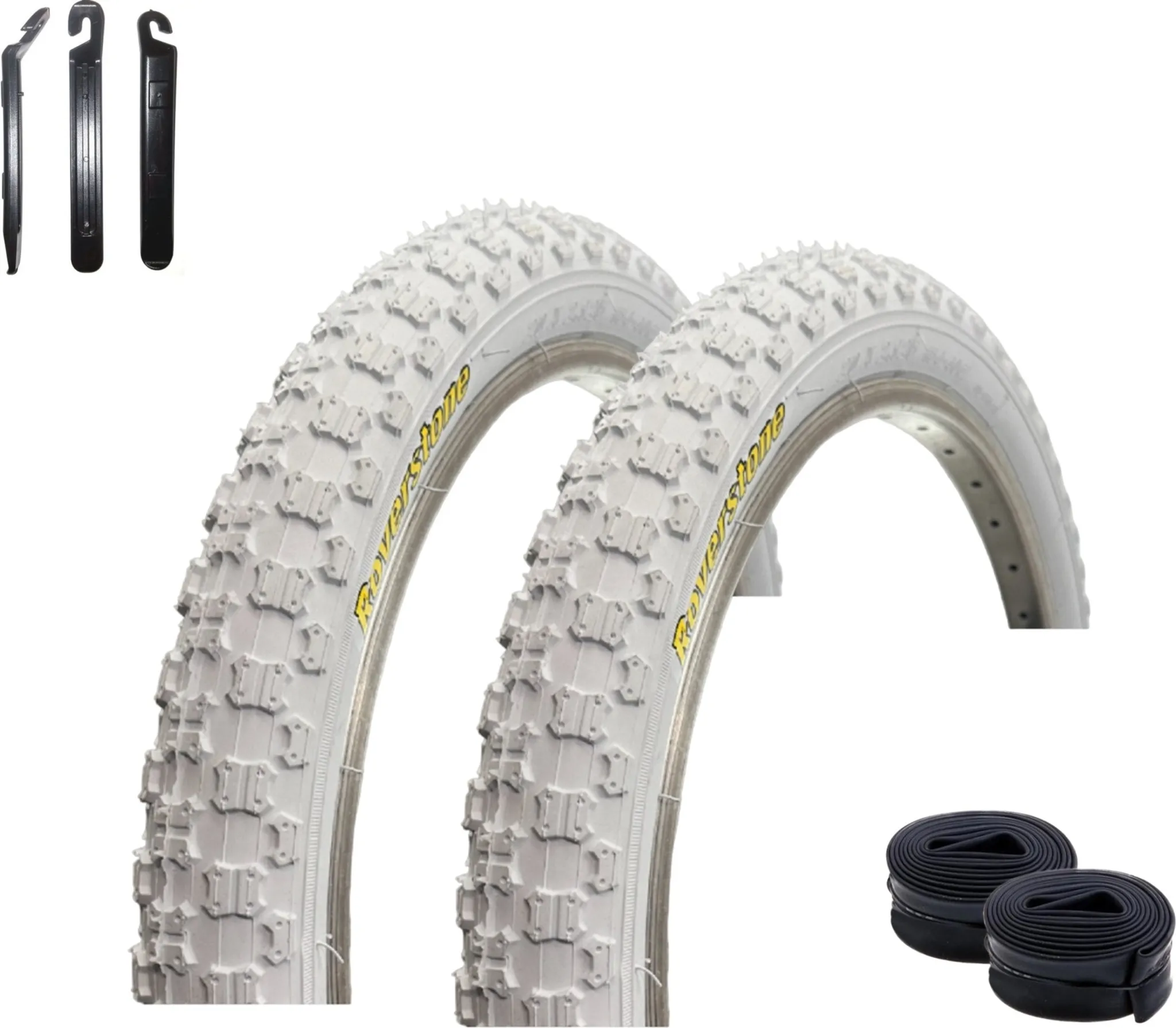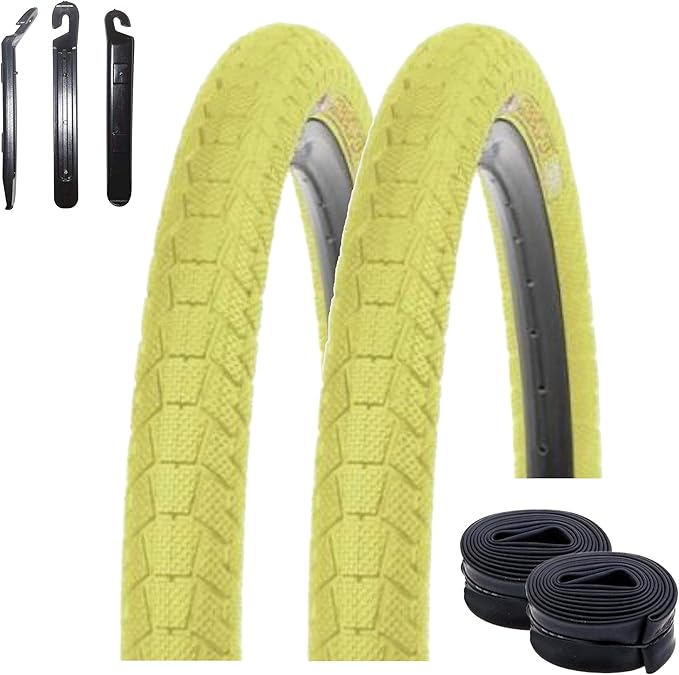 Dieses Kenda K-51 BMX Reifen Set in kräftigem Blau ist perfekt für alle Freestyle-Fans! Die Reifen in Größe 20 x 2.25 (ETRTO 58-406) bieten mit ihrem markanten Stollenprofil exzellenten Grip und optimale Traktion - egal ob du auf der Straße, im Park oder auf hartem Untergrund unterwegs bist. Das umlaufende Profil bis zu den Seitenwänden gibt dir zusätzlichen Halt in den Kurven, und die verstärkte Karkasse sorgt für hohe Stabilität und Langlebigkeit. Im Lieferumfang sind zwei Reifen, zwei passende Schläuche mit Autoventil und praktische Reifenheber enthalten - alles, was du für den sofortigen Einsatz brauchst. Mach dein BMX fit für das nächste Abenteuer!