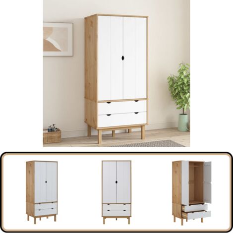 • HUAKEHOM Kleiderschrank BODO 99x53,5x173cm - Kiefernholz Weiß/Braun