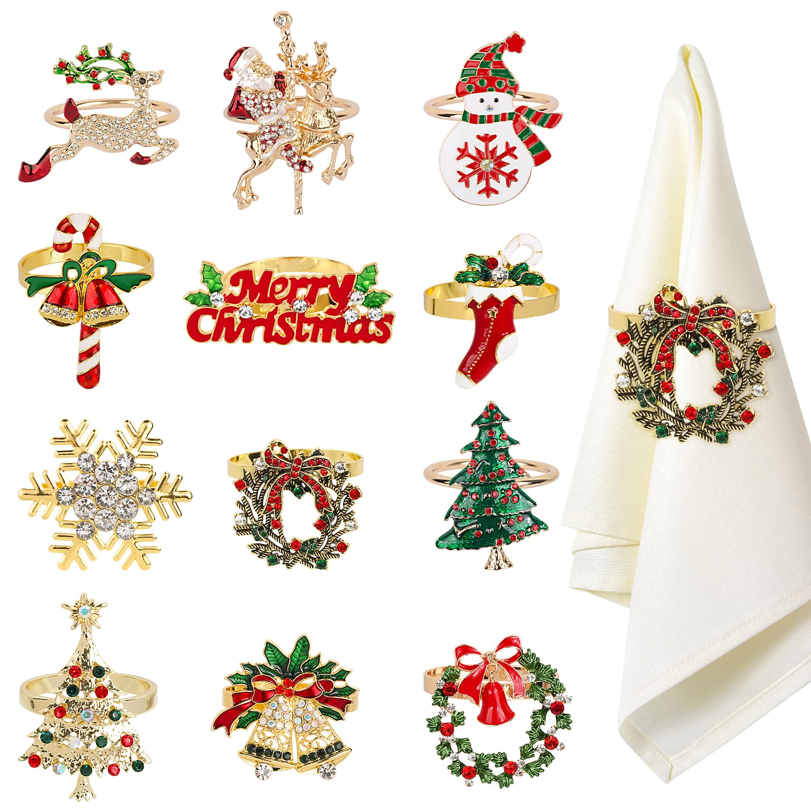 Weihnachtstisch mal anders! Mit unseren 12 goldenen Serviettenringen wird jede Festtafel zum Highlight. Jedes Stück zeigt ein anderes Weihnachtsmotiv: Schneeflocke, Rentier, Weihnachtsbaum, Weihnachtsmann, Schneemann, Kranz und Glocke. Aus hochwertiger Legierung gefertigt, 4cm Durchmesser - passt perfekt zu jeder Serviette. Ob für die Familienfeier, Weihnachtsmarkt oder Firmenparty - diese Deko lässt Herzen höher schlagen! Einfach die Servietten durchstecken und schon sieht's aus wie im Hotel. Mach dein Weihnachtsfest unvergesslich mit dieser bezaubernden Tischdekoration!