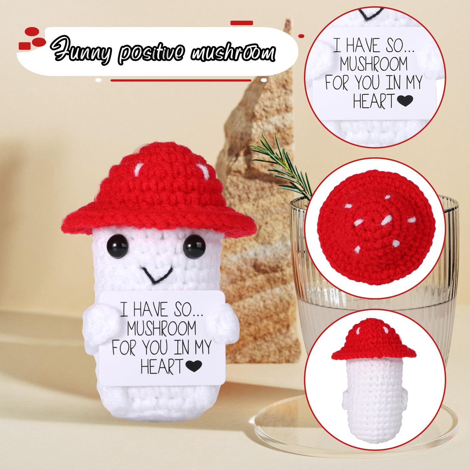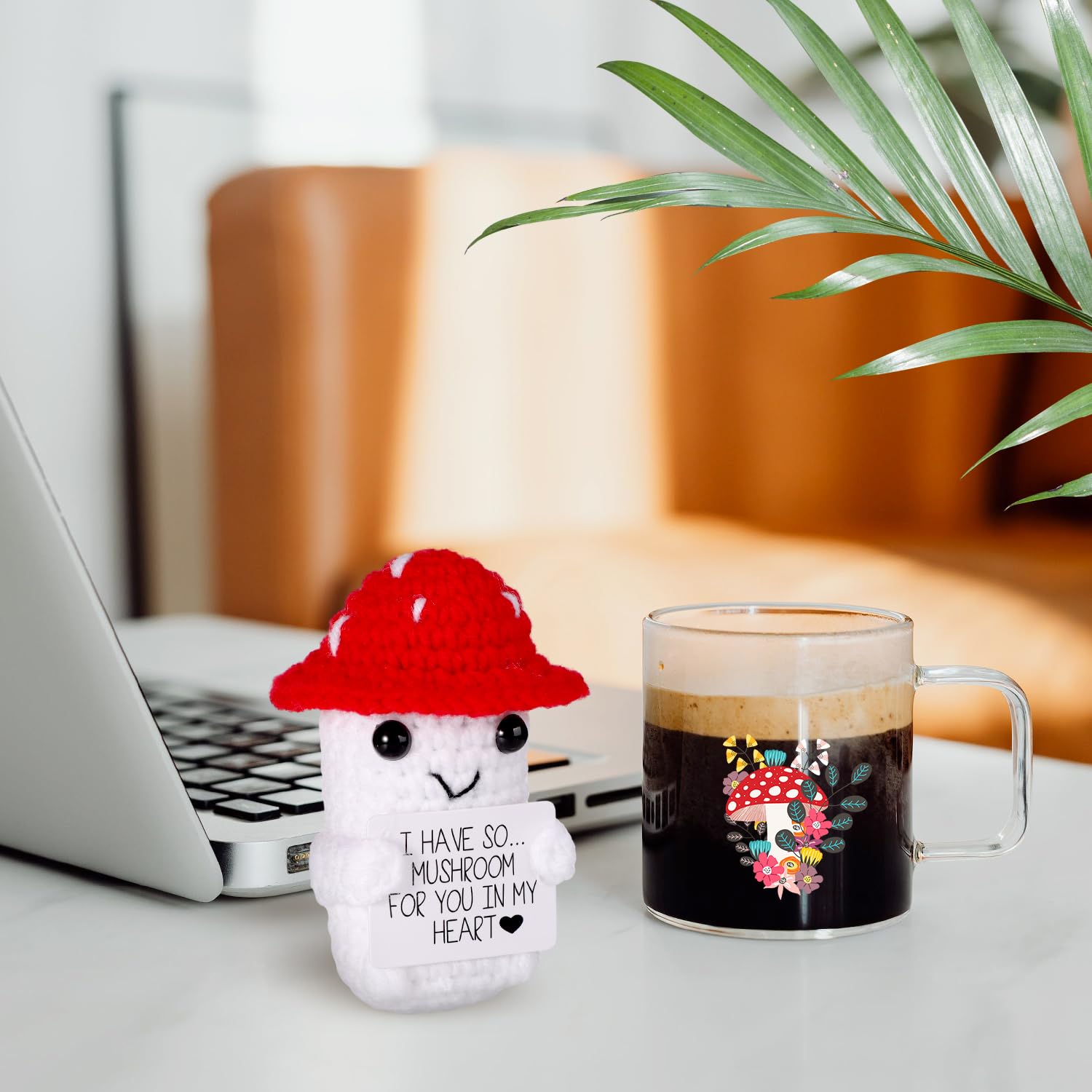 Wie niedlich ist denn dieser gestrickte Pilz von BOXOB? Mit 8,5cm Größe ist er der perfekte kleine Begleiter für jeden Tag! Aus weichem Wollgarn handgefertigt - super kuschelig und qualitativ echt hochwertig. Das Besondere: Er kommt mit einer inspirierenden Karte, die einfach gute Laune macht. Perfekt fürs Büro, Wohnzimmer oder als Party-Deko. Einfach überall hin mitnehmen und sich daran erfreuen. Ob als Geschenk für die beste Freundin, den Partner oder einfach mal für dich selbst - dieser süße Pilz bringt immer ein Lächeln ins Gesicht. Einfach mal was Anderes als die üblichen Geschenke!