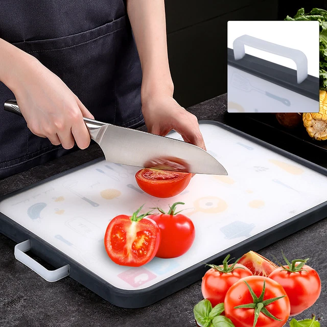 Endlich ein Schneidebrett, das hygienisch und praktisch zugleich ist! Dieses Titan-Schneidebrett aus Edelstahl S304 ist der Game-Changer in deiner Küche! \\n\\nDoppelseitig nutzbar - eine Seite für Obst/Gemüse, die andere für Fleisch! So vermeidest du Kreuzkontamination! Perfekt für alle, die Wert auf Küchenhygiene legen! \\n\\nIm Gegensatz zu Holz- oder Plastikbrettern nimmt es keine Gerüche an und hat keine Schnittrillen, in denen sich Bakterien sammeln können! Einfach abspülen und es ist wie neu! \\n\\nMit 34x23cm (auch in 30x20cm und 39x28cm erhältlich) ist es groß genug für alle Schneidearbeiten! Ob Fleisch mit Knochen, Brot kneten oder Teig ausrollen - alles kein Problem! \\n\\nSuper leicht und dünn - platzsparend zu verstauen! Kann sogar aufgehängt werden! Und die abgerundeten Ecken verhindern lästige Schnittverletzungen beim Reinigen! \\n\\nBPA-frei und lebensmittelecht - absolute Sicherheit für deine Gesundheit! Einfach das beste Schneidebrett, das du je hattest!