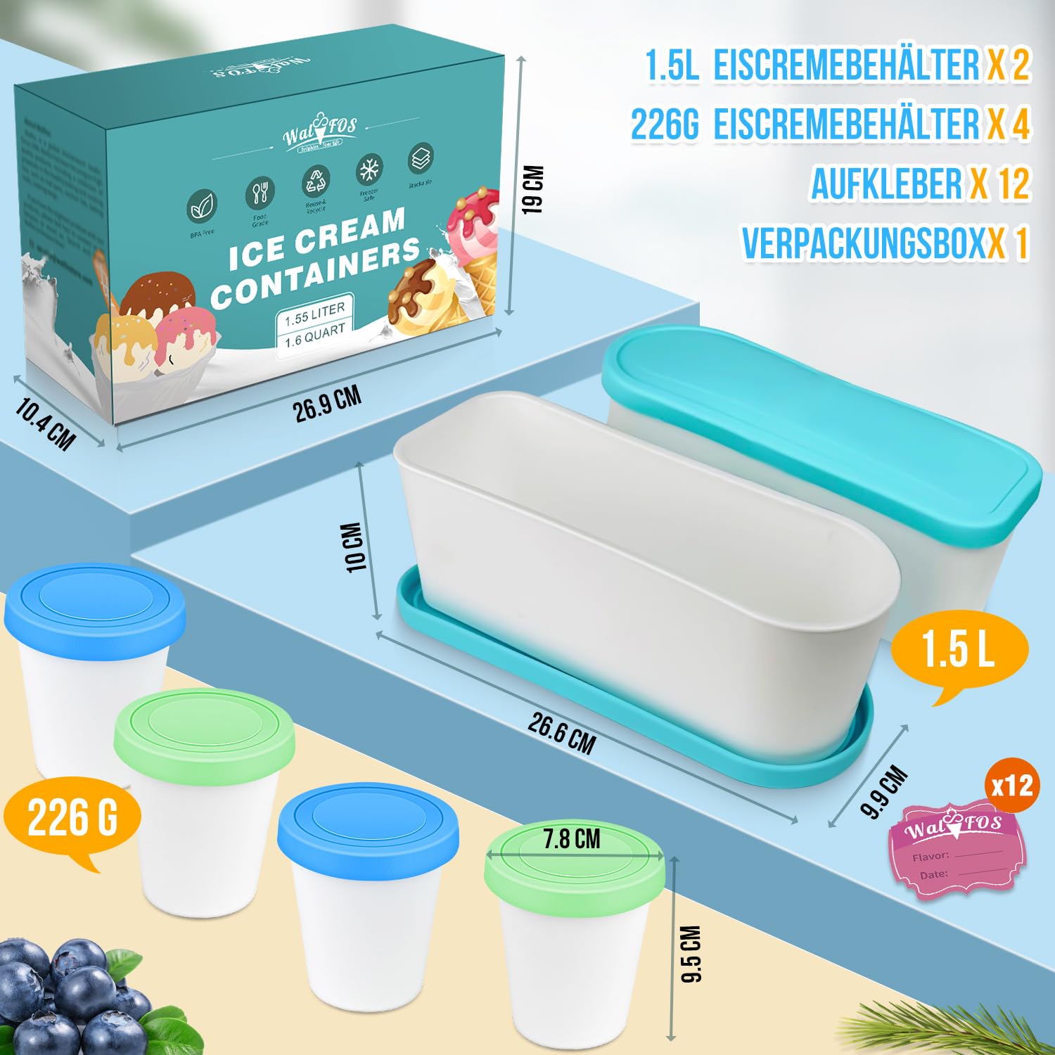 Eis lieben aber keine Lust auf die ganzen Einwegverpackungen? Diese beiden Eisbehälter sind genau das Richtige für dich! Mit je 1,5 Liter Fassungsvermögen ist genug Platz für dein selbstgemachtes Eis, Joghurt oder Sorbet. Aus 100% lebensmittelechtem PP- und TPR-Material, komplett BPA-frei und richtig stabil. Die rutschfeste Basis sorgt dafür, dass nichts verrutscht, und die Deckel schließen luftdicht ab - da bleibt dein Eis wochenlang frisch. Super praktisch: Sie sind stapelbar und sparen so Platz im Gefrierschrank. Ob für Vanilleeis, Schokolade oder fruchtige Sorbets - hier passt alles rein. Die Reinigung ist ein Kinderspiel, und die doppelte Isolierung hält die Kälte besonders lange. Perfekt für Meal Prep, Familien oder einfach alle, die gerne mal was einfrieren wollen. Mach dein eigenes Eis, frier es ein und genieß es, wann immer du willst - ohne schlechtes Gewissen wegen der Verpackung!