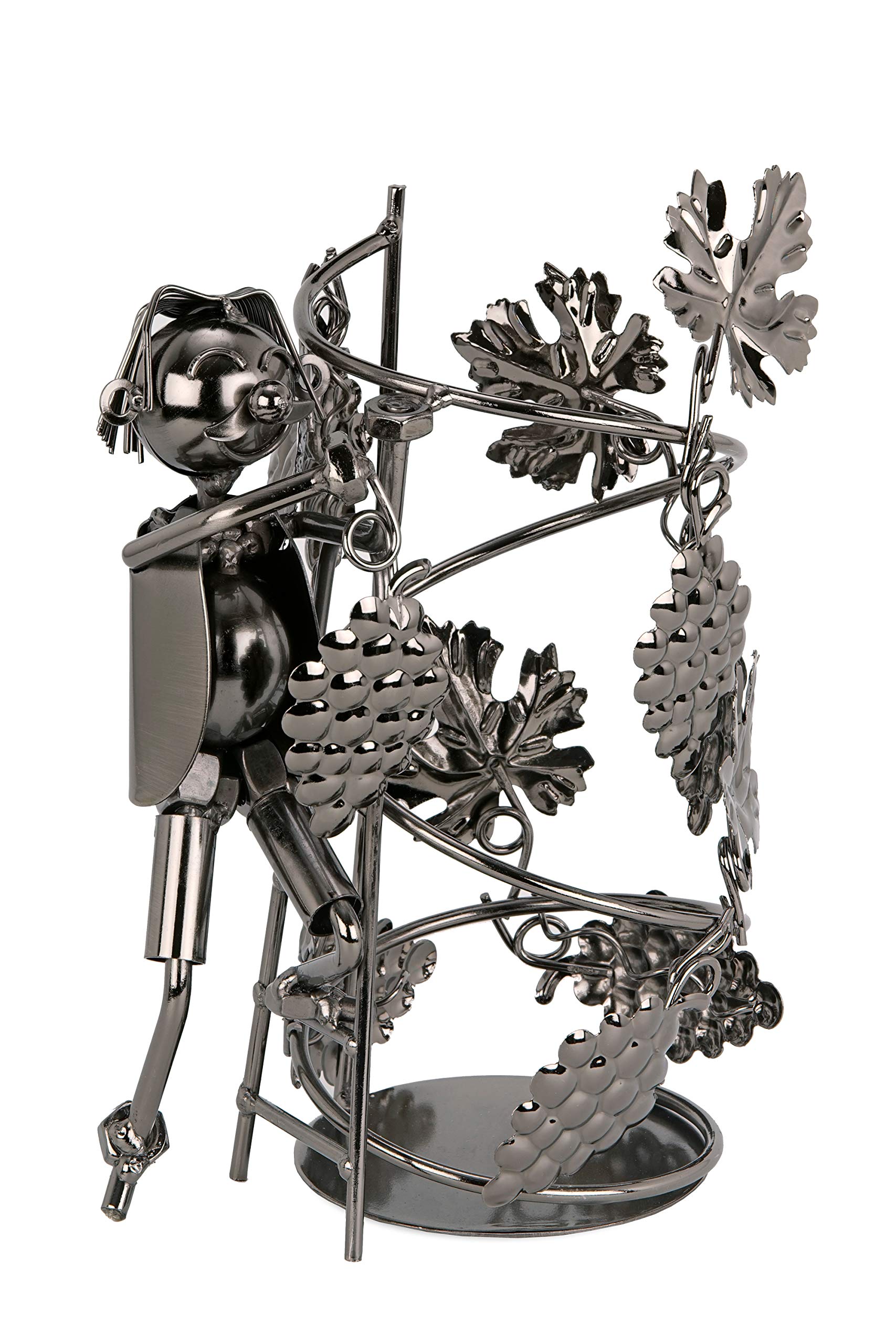 Weinfreunde aufgepasst! Dieser BRUBAKER Weinflaschenhalter ist nicht nur praktisch, sondern auch ein echter Hingucker für jede Wohnung. Aus matt glänzendem Metall gefertigt, zeigt die detailverliebte Skulptur einen fröhlichen Winzer mit Weintrauben - einfach niedlich! Mit einer Höhe von 22,5 cm (ohne Flasche) bietet er Platz für Flaschen mit bis zu 7,3 cm Durchmesser. Aber Achtung: Die Weinflasche ist nicht im Lieferumfang enthalten, du kannst aber natürlich deine Lieblingsflasche reinstellen. Das Besondere: Es passt nicht nur Wein, sondern auch Sekt-, Champagner- oder Ölflaschen finden hier einen stylischen Platz. Und als i-Tüpfelchen liegt sogar eine passende Geschenkkarte dabei - ideal für jeden Anlass! Ob zum Geburtstag, Jubiläum oder einfach als Mitbringsel für Weinliebhaber, dieses Teil kommt immer gut an. Stell dir vor, wie toll das in deiner Küche oder im Wohnzimmer aussieht! Ein echter Eyecatcher, der immer Gesprächsstoff liefert.