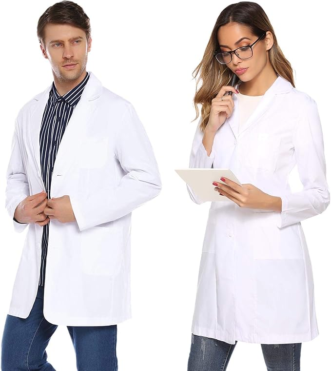 Dieser weiße Laborkittel von BSBUY ist ein echter Allrounder für alle, die im medizinischen oder Laborbereich arbeiten! Aus 30% Baumwolle und 70% Polyester ist er angenehm zu tragen, atmungsaktiv und pflegeleicht. Mit drei praktischen Taschen hast du immer Platz für Stethoskop, Stifte, Handy und andere Utensilien. Die geknöpften Manschetten lassen sich easy am Handgelenk fixieren. Egal ob du Arzt, Wissenschaftler, Student oder Techniker bist - dieser Kittel passt immer. Es gibt ihn in den Größen M, L, XL, XXL und XXXL, also für wirklich jede Körpergröße. Und das Beste: Er eignet sich auch super als Kostüm für Halloween oder Karneval! Einfach anziehen, zuknöpfen und du siehst sofort professionell aus. Perfekt für Labor, Krankenhaus, Praxis oder auch mal für die Mottoparty!
