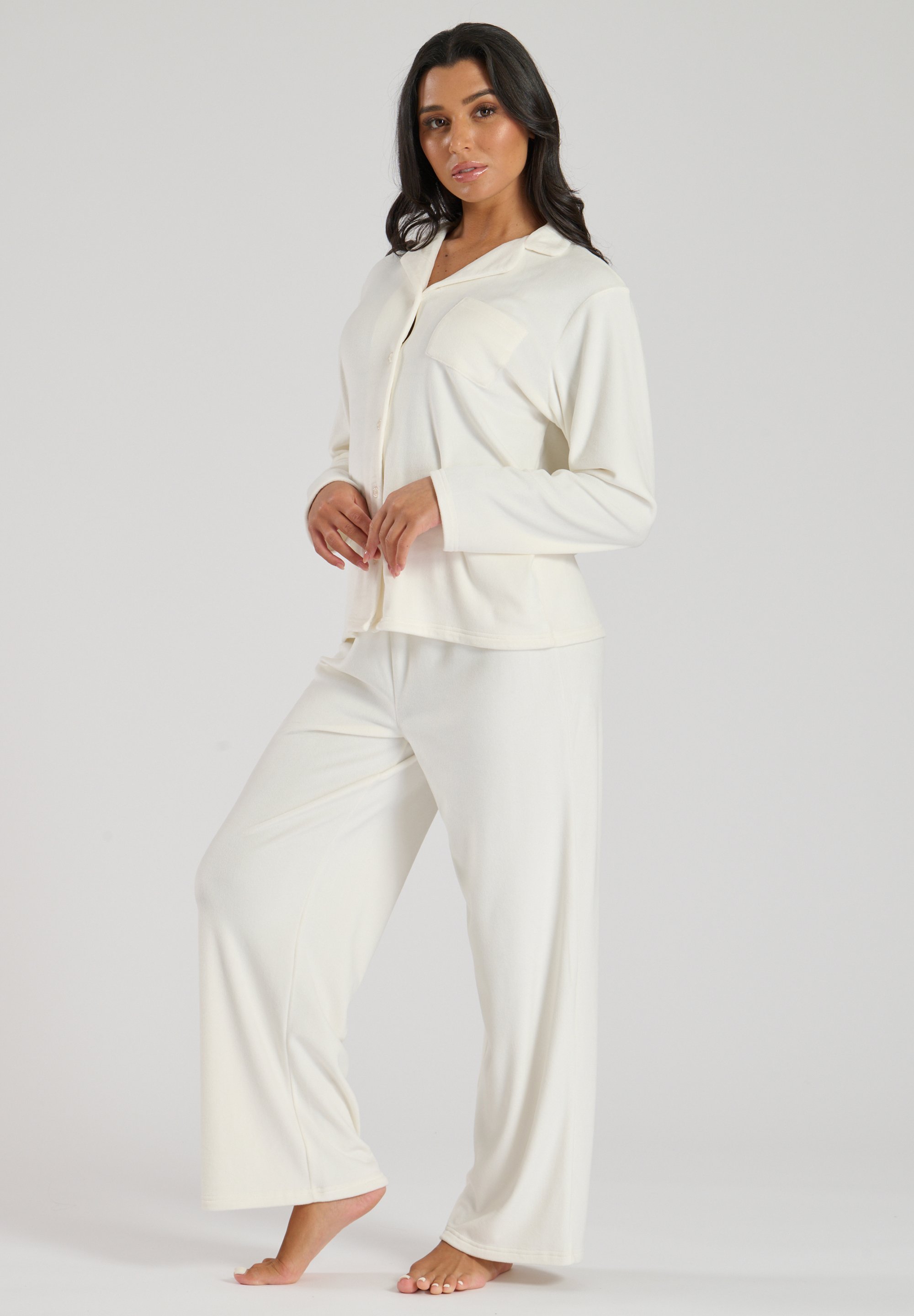 So gemütlich war Schlafanzug tragen noch nie! Dieses 2-teilige Pyjama-Set für Damen besteht aus superweichem Rippstrick-Material, das sich herrlich dehnbar und kuschelig anfühlt. Das Langarm-Oberteil mit schickem V-Ausschnitt und die passende Hose sorgen für eine feminine Silhouette. Perfekt nicht nur zum Schlafen, sondern auch als lässiges Loungewear für gemütliche Tage zu Hause. Das Material ist atmungsaktiv und bietet ganztägigen Tragekomfort - ob beim Entspannen auf dem Sofa oder für erholsamen Schlaf. In verschiedenen trendigen Farben erhältlich, sodass für jeden Geschmack was dabei ist. Maschinenwaschbar und formbeständig - auch nach häufigem Waschen bleibt die weiche Textur erhalten. Ein echter Allrounder für den Kleiderschrank, der sich vielseitig kombinieren lässt. Einfach anziehen und den Komfort genießen - das perfekte Set für alle, die Wert auf Gemütlichkeit und Style legen!