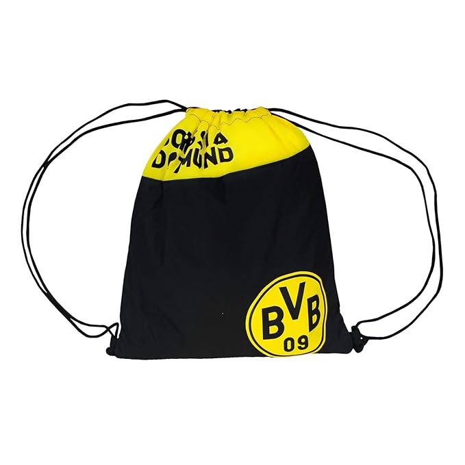 BVB Turnbeutel Borussia Dortmund - 41x43cm Schwarz Mit Neon-Design, Polyester