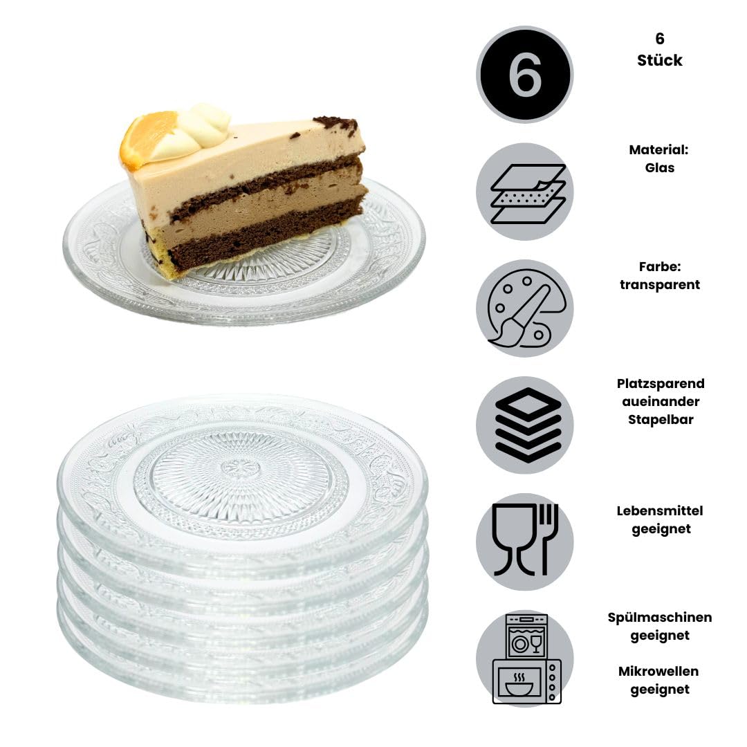 Diese hübschen Glasteller im Vintage-Stil verleihen deinem Esstisch sofort einen besonderen Charme! Mit einem Durchmesser von etwa 14,5 cm sind sie perfekt für Desserts, Vorspeisen, Obst, Kuchen, Salat oder Snacks. Hergestellt aus stabilem Glas, sind sie spülmaschinenfest und können sogar in der Mikrowelle verwendet werden. Das elegante, geprägte Muster gibt den Tellern eine schöne Textur und macht sie zu einem echten Hingucker. Da sie sich gut stapeln lassen, sind sie auch platzsparend in der Schrank. Leicht genug, dass auch Kinder und ältere Menschen sie gut tragen können. Ein vielseitiger und stylischer Begleiter für jeden Tag und besondere Anlässe!