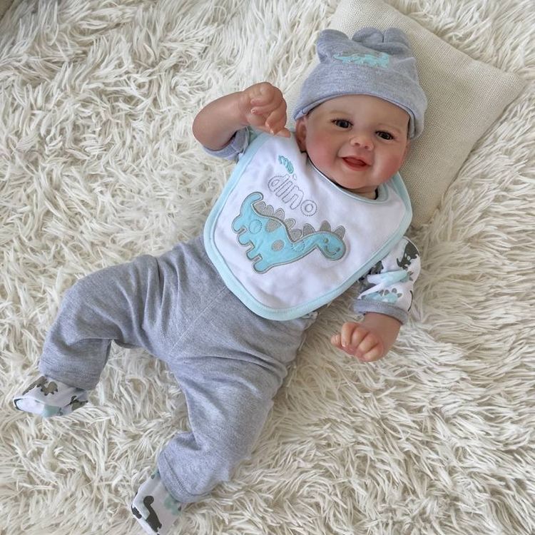Dieses Reborn Baby ist so lebensecht, dass man es kaum glauben kann! Mit 45cm Größe und etwa 1kg Gewicht fühlt es sich an wie ein echtes Neugeborenes. Kopf, Arme und Beine sind aus weichem Silikon-Vinyl-Gemisch - super realistisch und angenehm zu halten. Die blaue Augen, echten Wimpern und handbemalten Augenbrauen machen das Baby unglaublich echt. Sogar die Haut sieht aus wie bei einem richtigen Baby! Im Lieferumfang ist alles dabei: ein süßes Baby-Outfit, Magnetschnuller und eine Geburtsurkunde. Perfekt für Sammler, als Trostpuppe oder als Spielgefährte für Kinder ab 3 Jahren. Die Puppe entspricht allen Sicherheitsstandards und ist absolut unbedenklich. Sie kann sitzen und liegen wie ein echtes Baby - einfach zum Verlieben! Ein wunderschönes Geschenk für jeden Anlass, das garantiert Freude macht.