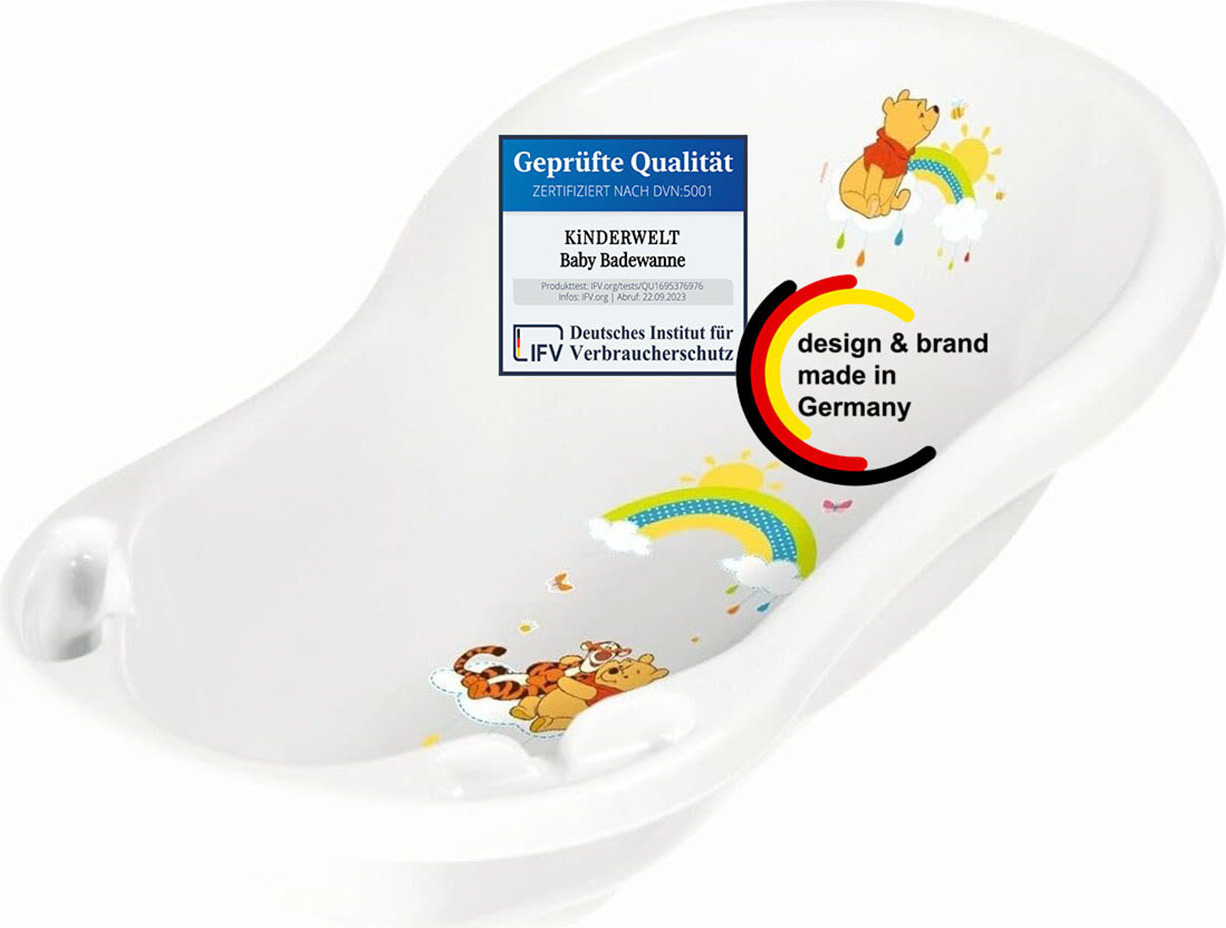 Das erste Badeerlebnis deines Babys sollte besonders sein! Diese anatomisch geformte Babybadewanne in Weiß macht das Baden zum Vergnügen. Mit 84cm Länge, 49cm Breite und 29cm Höhe bietet sie genug Platz für Babys von 0-12 Monaten. Das ergonomische Design gibt deinem Kind sicheren Halt, während die integrierten Ablageflächen praktisch für Seife und Shampoo sind. Aus hochwertigem, BPA-freiem Kunststoff (PP/TPE) in Europa hergestellt - absolut sicher für dein Baby. Leicht zu reinigen und mit nur 884g Gewicht einfach zu handhaben. Perfekt in Kombination mit einem KINDERWELT Universalständer. Mach das Baden zur schönsten Zeit des Tages!