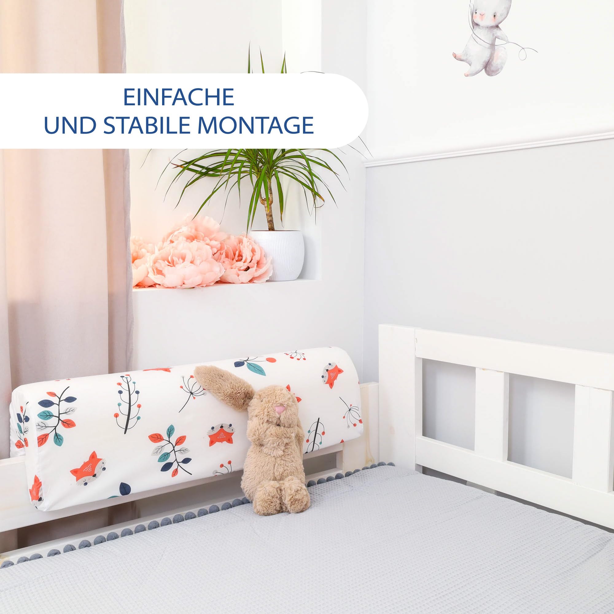 Sicherheit und Komfort für dein Kind! Dieser niedliche Bettkantenschutz mit Fuchs-Design schützt dein Baby vor kalten Bettrahmen und Stößen. Aus weicher Baumwolle mit Polyurethanschaum-Füllung - atmungsaktiv und langlebig. Mit 70cm Länge, 14cm Breite und 20cm Höhe passt er perfekt an die meisten Kinderbetten. Die flexible Öffnung ermöglicht einfache Montage an verschiedenen Barrieren. Bezug bei 30°C maschinenwaschbar - super praktisch! Auch als bequeme Rückenlehne nutzbar. Hergestellt in der EU mit Liebe zum Detail. Die dezenten Farben passen in jedes Kinderzimmer. Universal für Jungen und Mädchen. Einfach anbringen und dein Kind kann sicher und gemütlich schlafen!
