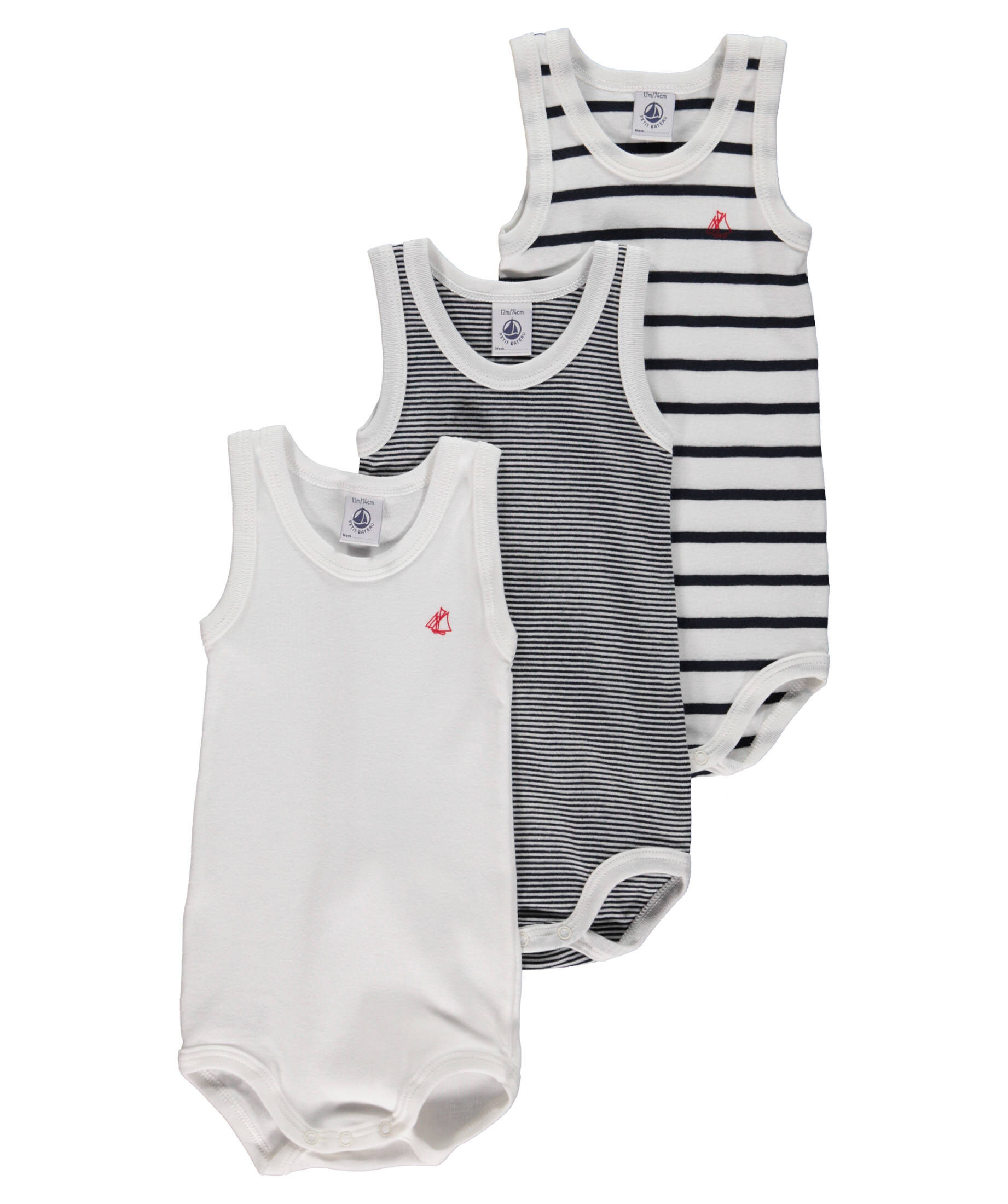 • Petit Bateau Baby Bodies Jungen 3er Pack - Kurzarm Bodies Aus Rippstrick Mit Druckknöpfen
