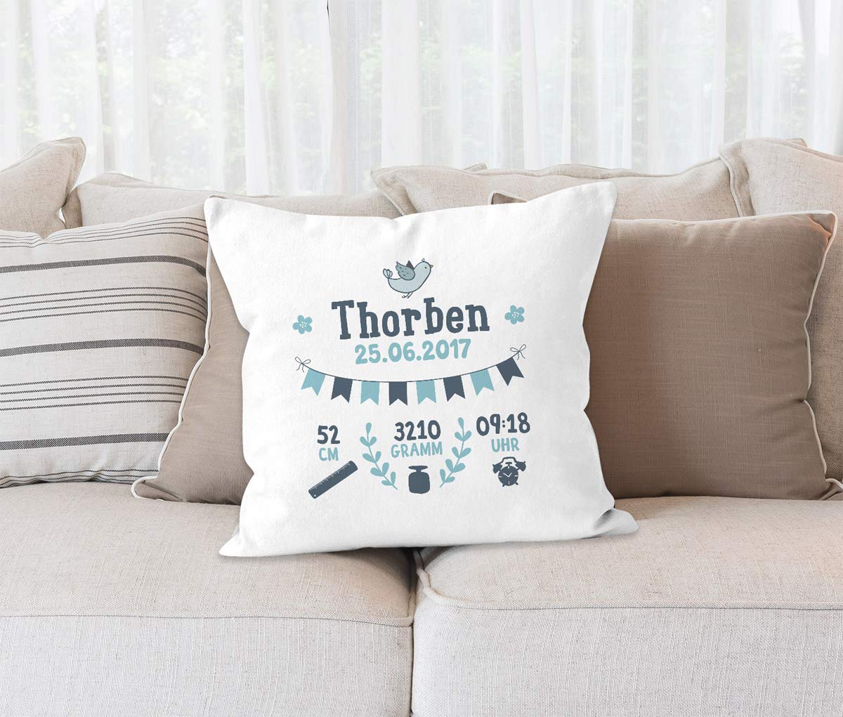 Ahoi kleiner Seebär! Dieses süße Geburtskissen mit Kapitäns-Motiv ist das perfekte Willkommensgeschenk für dein Baby. Du kannst es komplett personalisieren - mit Namen, Geburtsdatum, Uhrzeit, Gewicht und Größe. Maße: 40x40 cm, aus 100% Baumwolle und mit Reißverschluss. Das maritime Design mit Anker und Kapitäns-Motiv sieht im Kinderzimmer einfach niedlich aus! Wichtig: Die Füllung ist nicht dabei, nur der Bezug. Aber das ist ja auch besser - so kannst du selbst entscheiden, wie fest oder weich das Kissen sein soll. Wird in Deutschland in fairer Handarbeit bedruckt und ist meist innerhalb von 1-2 Tagen versandbereit. Perfekt als Kuschelkissen fürs Baby, als Erinnerungsstück für die Eltern oder einfach als Deko fürs Zimmer. So wird der Start ins Leben richtig festlich!