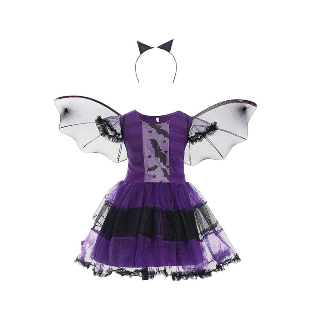 Für die kleine Hexe in deinem Leben! Dieses niedliche Fledermaus-Kleid ist das perfekte Kostüm für Halloween, Karneval oder Mottopartys. Aus weichem 100% Polyester, damit es auch bei langen Feiern bequem sitzt. Mit süßen Rüschen, Spitzen-Applikationen und einem verspielten Tutu-Saum. Der Rundhalsausschnitt und die langen Ärmel sorgen für extra Komfort. In Größen von 9-12 Monaten bis 4-5 Jahren verfügbar - da findet sich für jede kleine Hexe die passige Größe. Ob für die Kindergarten-Party, Halloween-Trick-or-Treat oder einfach nur zum Verkleisen - damit wird dein Mädchen zum Star jeder Feier!
