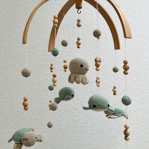 Süßes Mobile fürs Baby-Bett! Mit niedlichen Meerestieren aus Filz - bunt und kindgerecht. Ca. 45cm groß - perfekt über dem Bettchen oder Stubenwagen. Aus Filz und Holz - natürliche Materialien. Integrierte Glocken machen sanfte Töne - beruhigen beim Einschlafen. Die beweglichen Teile fördern die Augen-Hand-Koordination. Weich und sicher - keine scharfen Kanten. Leicht zu montieren - einfach aufhängen. Macht jedes Kinderzimmer gemütlicher. Perfektes Geschenk zur Geburt oder Taufe. Einfach installieren und zuschauen wie dein Baby fasziniert ist. Wirklich niedlich und pädagogisch wertvoll!
