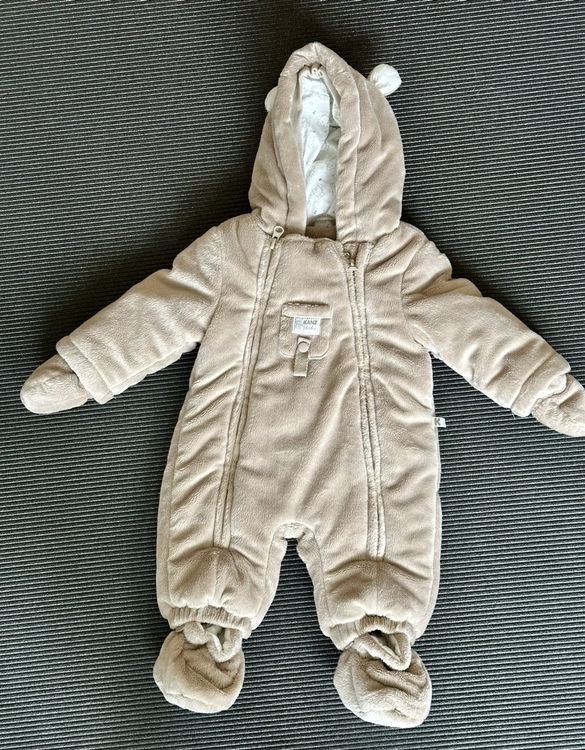 Wenn's draußen kalt wird, braucht dein Baby was richtig Warmes! Dieser flauschige Kanz Overall aus weichem Plüsch wärmt von Kopf bis Fuß. Besonders praktisch: Die passenden Fäustlinge sind dabei und können einfach angenknöpft werden. Zwei Reißverschlüsse vorne machen das Anziehen super easy. Die Kapuze ist weich gefüttert und passt sich dem Köpfchen perfekt an. Niedliche Details wie die kleinen Öhrchen an der Kapuze und eine Mini-Tasche machen den Overall noch süßer. Perfekt für kalte Wintertage - dein Baby bleibt kuschelig warm! (Fußüberzieher sind nur bis Größe 74 enthalten)