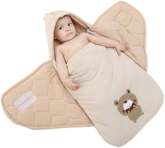 Kuscheliger Baby-Schlafsack in süßem Bär-Design! Aus weichem Lamm-Fleece - super kuschelig und warm. Mit Kapuze für extra Gemütlichkeit. Zwei Größen: 62cm (0-1 Monate) und 70cm (1-3 Monate). Verstellbarer Klettverschluss - passt sich perfekt an. Farben: Blau, Rosa, Weiß, Khaki, Rot, Grau. Perfekt für: Kinderwagen, Babyschale, zu Hause. Macht das Baby ruhig und entspannt. Ideal als Geschenk für junge Eltern!
