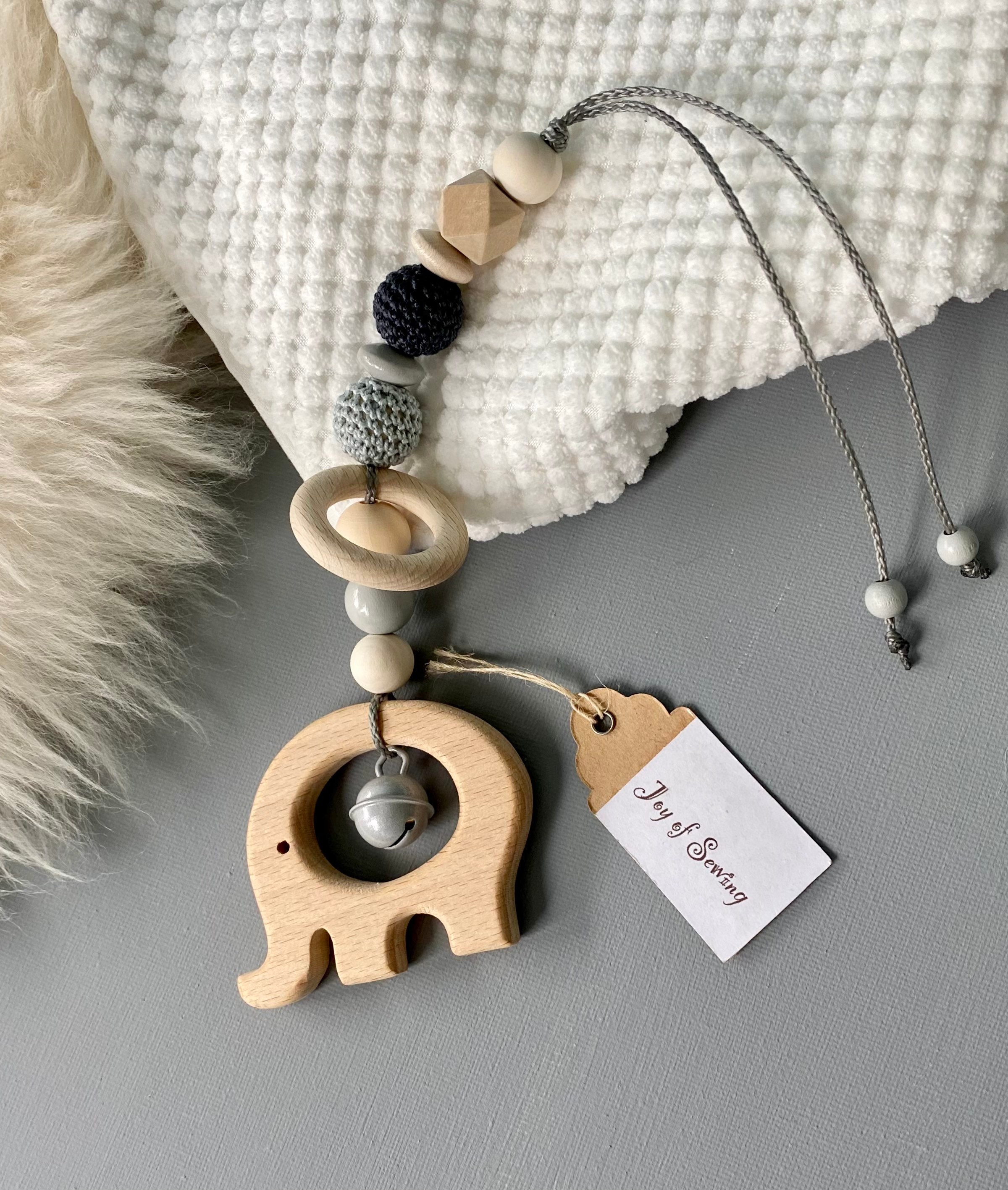 So süß und praktisch! Diese handgewebte Kinderwagenkette aus Holz und Baumwollfaden ist das perfekte Spielzeug für dein Baby. Die niedlichen Häkelnadel-Elemente in Grau machen ein sanftes Geräusch, wenn sie geschüttelt werden - das fasziniert jedes Baby!