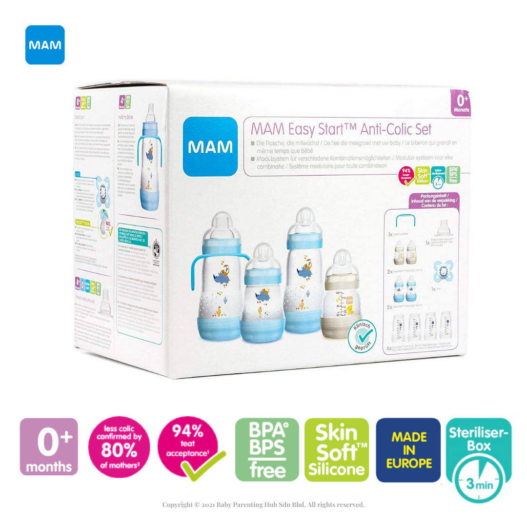 Das perfekte Starter-Set für dein Baby! Dieses MAM Easy Start Set hat alles, was du in den ersten Monaten brauchst - und sieht dabei noch super süß aus mit dem Eulen-Design im matten Finish. Die genialen Anti-Colic-Flaschen reduzieren Koliken um satte 80% - dank des cleveren Belüftungssystems im Boden. So bleibt Babys Bäuchchen entspannt! Das Beste: Die Flaschen sind selbststerilisierend - einfach 20 ml Wasser rein, 3 Minuten in die Mikrowelle, und schon sind sie keimfrei! Super praktisch, wenn mal keine Zeit für den Sterilisator ist. Im Set sind eine 160 ml und eine 260 ml Flasche dabei, plus ein süßer Schnuller ab 0 Monaten. Die Skin Soft Silikon-Sauger werden von 94% der Babys akzeptiert - weich und angenehm. Alles ist 100% BPA- und BPS-frei, also völlig unbedenklich für dein Kleines. Die Flaschen sind geruchs- und geschmacksneutral - perfekt für Muttermilch und Formula. Mach dir das Leben leichter mit diesem durchdachten Set, das wirklich mitdenkt! Perfekt als Geschenk zur Geburt oder für die eigene Ausstattung.